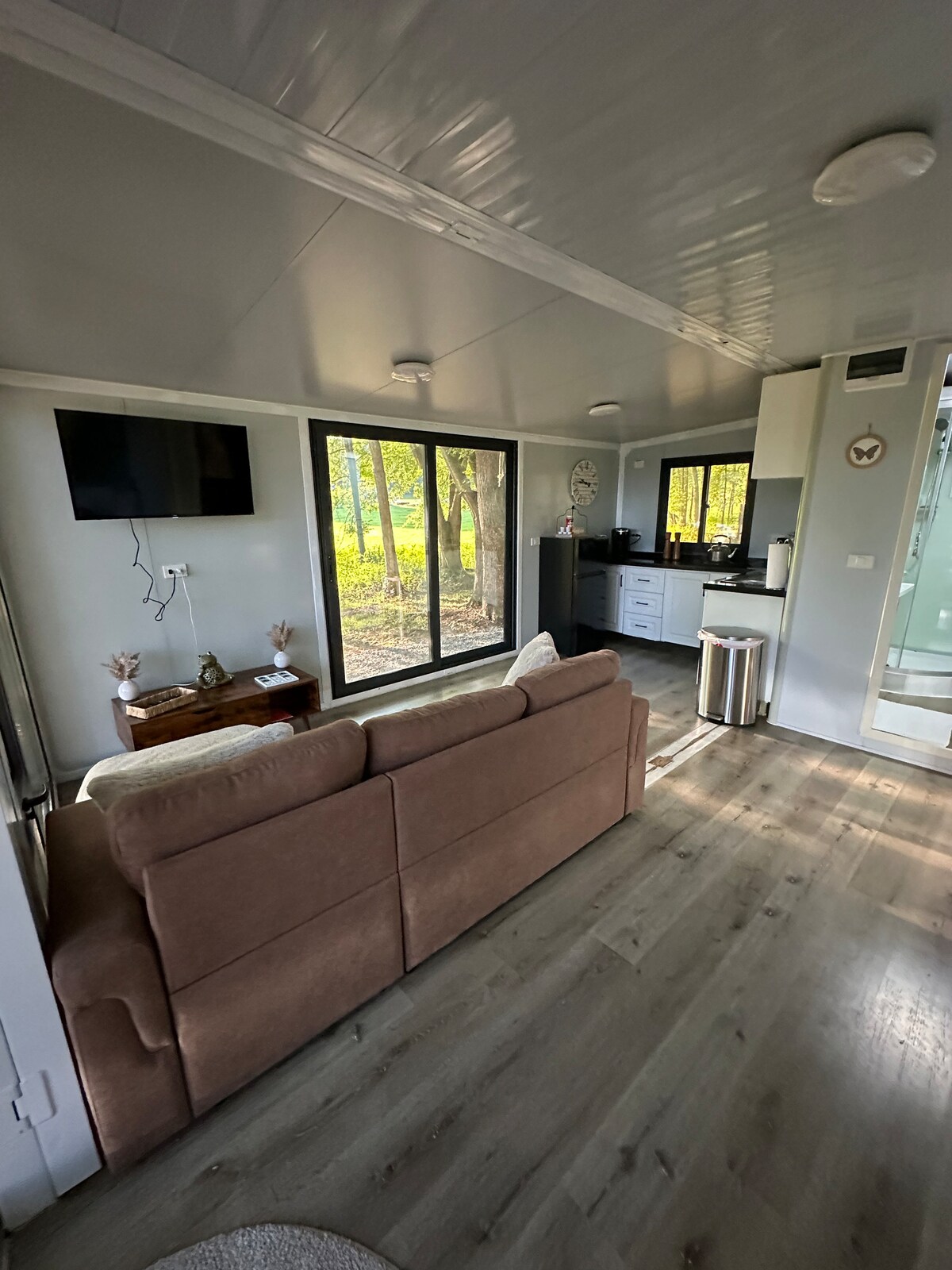 Vi byggede denne lille hytte i 2015 for at være vært for vores venner og familie. Vi er nu tomme nester og har masser af plads! Vores hytte ligger bag vores hjem, men den er stadig privat. Vi bor midt i skoven, og ofte er der hjorte på lysningen foran hytten. Vi får snart vores dam færdiggjort i nærheden. Ikke noget særligt, men behageligt og fredfyldt. Hytten har god wi-fi og et smart-tv. Kom og nyd freden og roen på landet, og slap af på verandaen!