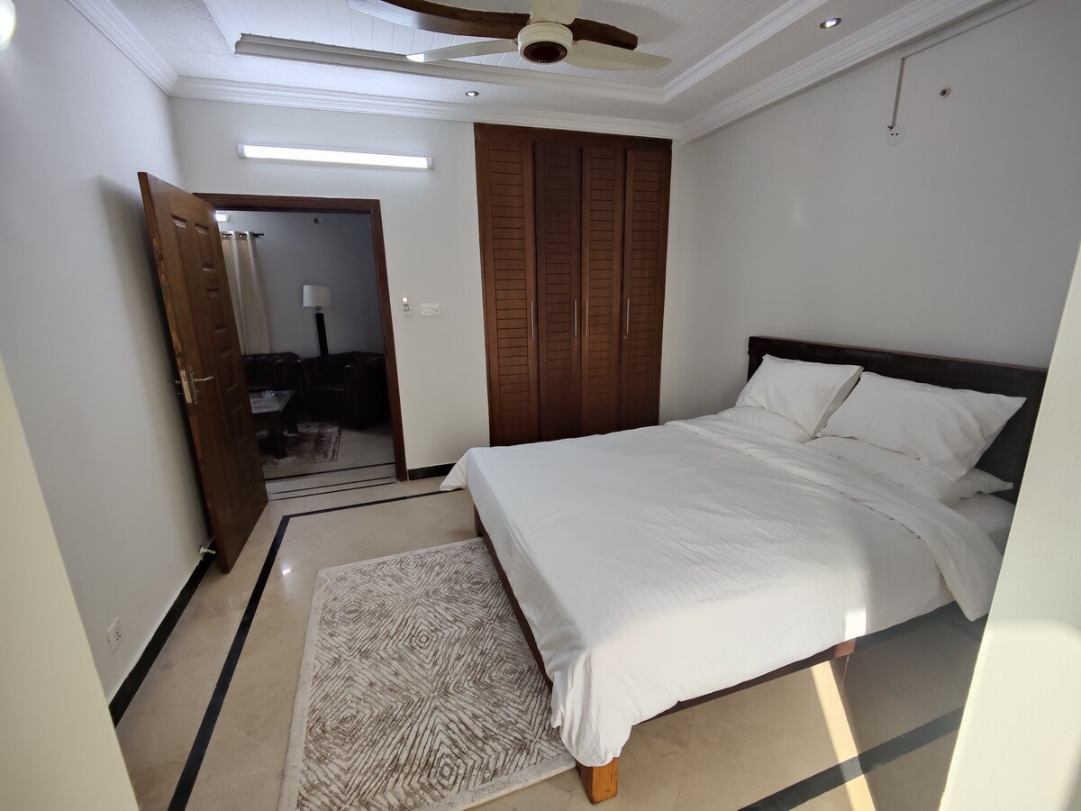 ✨ Komfort kommer først Slap af i et hyggeligt soveværelse med en førsteklasses madras, mørklægningsgardiner og aircondition/varme, så du kan føle dig godt tilpas året rundt. 📍 Central beliggenhed Bo i nærheden af Blue Area & F-7, med alt i nærheden: 🛍️ Centaurus Mall til shopping ☕️ Caféer på Kohsar-markedet og F-7 ⛰️ Margalla Hills og Daman-e-Koh i nærheden 🚗 Uber/Careem til lufthavnen på cirka 30 minutter Perfekt til familier og forretningsrejsende, der leder efter komfort og udsigt over byen. ✨🌄