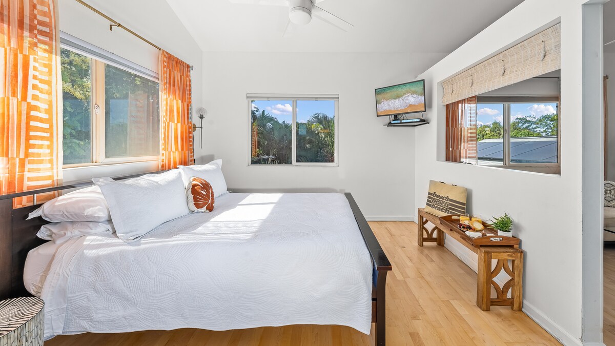 4 SOVEVÆRELSER, 2 KOMPLETTE BADEVÆRELSER - HELT OMDANNET BOLIG Beliggende i det centrale Kihei kun to blokke fra stranden, Starbucks, golfbaner, Kalama Park, restauranter, biograf, madvogne, underholdning, Foodland osv. Denne ejendom er sikret og fuldt indhegnet. Det fælles område består af en indkørsel, have og 2 udendørs brusere. Aircondition i alle rum + privat udendørs grill og vaskemaskine. Du skal bo i hovedhuset på ejendommen og har din egen parkeringsplads med oplader til elbiler.