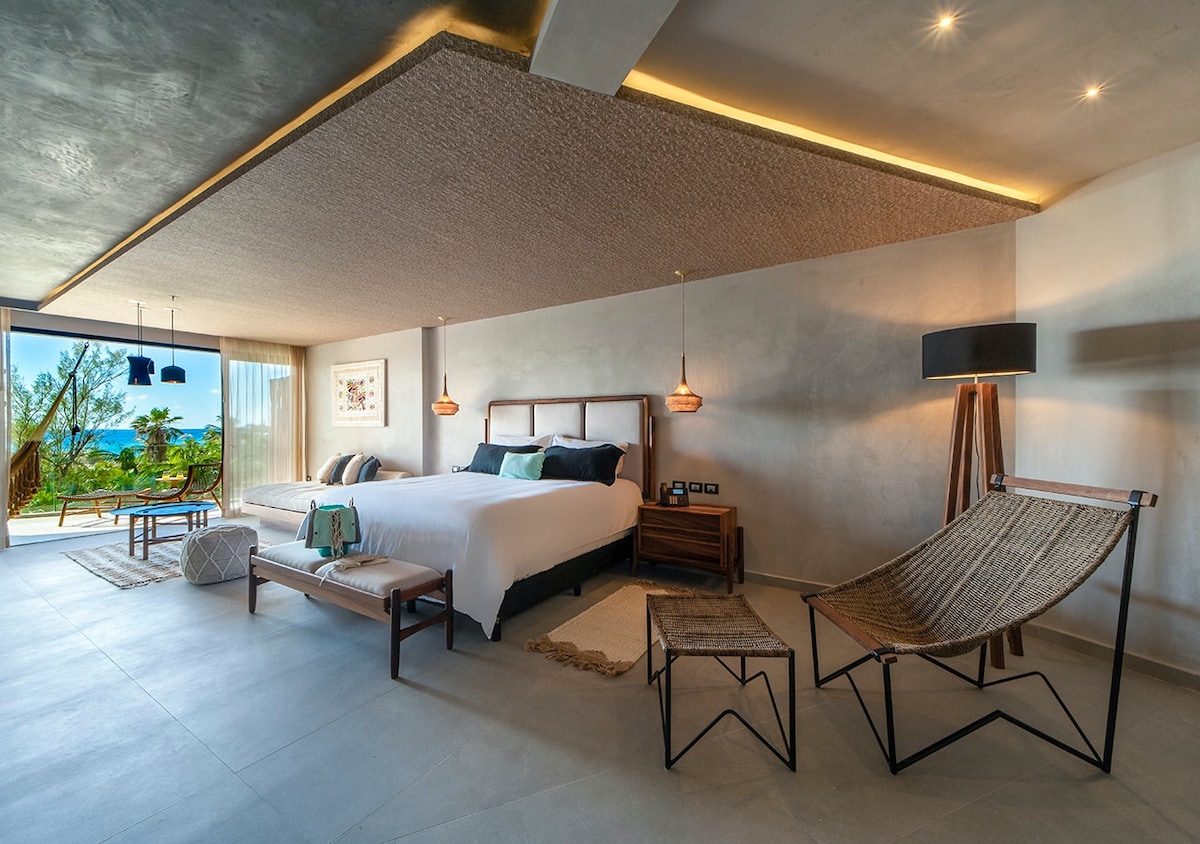 Master suite med panoramaudsigt over Det Caribiske Hav og privat tagterrasse med pool, to lounger, lounge og bruser. Den har en kingsize-dobbeltseng, sovesofa og balkon med udsigt over stranden, videoprojektor med streaming-apps og et lydsystem. Det har et moderne køkken med et elektrisk komfur, køleskab, brødrister, kaffemaskine og tekedel, med tilbud om te og kaffe. Inkluderede faciliteter såsom gratis wi-fi, strandhåndklæder, hårtørrer, hårtørrer, pengeskab.