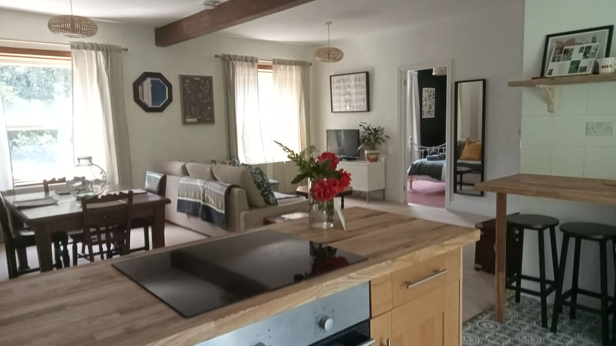 Maple Croft ligger 5 minutters gang fra hjertet af den finurlige, livlige Hebden Bridge med udsigt over dalen. Det er en nyindrettet, selvstændig lejlighed i stueetagen i et familiehus. Vi tilbyder gratis off-road parkering til en bil med adgang til opladning af elbiler. Du har et dobbeltværelse med eget badeværelse og dit eget opholdsområde/indbygget køkken med franske døre, der fører ud til din terrasse. Du er et par skridt fra dejlige Pennine-vandreture, eller en kort gåtur ned til de mange barer og restauranter.