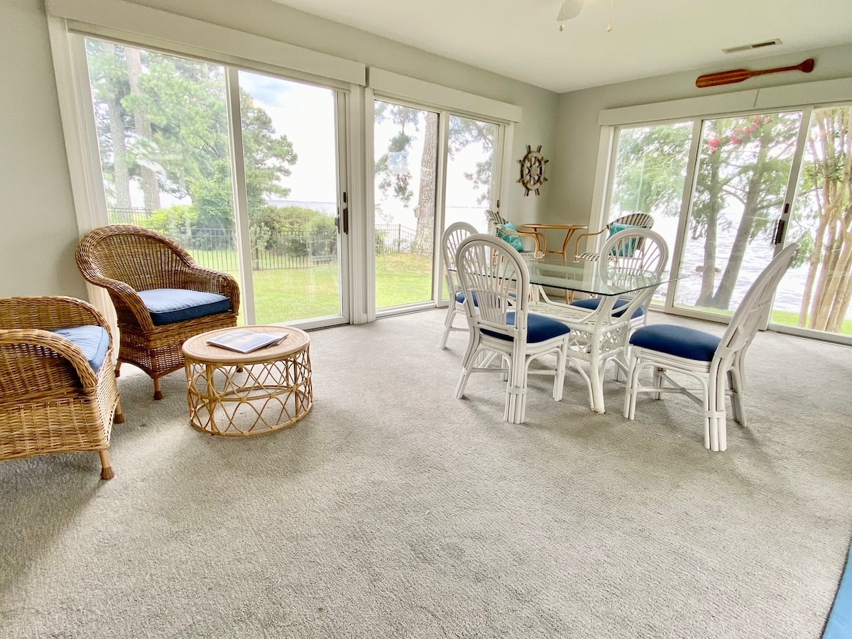 Et fredeligt, afslappende overnatningssted for par, erhvervsfolk og små familier i et fantastisk, roligt nabolag. Dette nabolag har lidt trafik og er perfekt til at gå og cykle. Sherrys hus er handicapvenligt, to soveværelser (mesteren har queensize-dobbeltseng), to badeværelser, kontor/vaskerum og garage. Denne beliggenhed ligger kun 10 km fra det historiske centrum af Edenton, som tilbyder restauranter, shopping, historiske ture og en smuk udsigt over vandet.