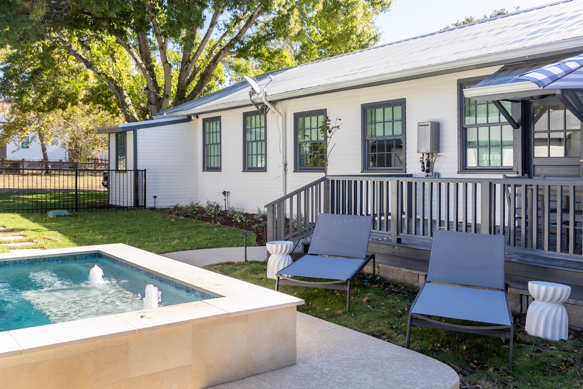 Peaceful serenity surrounds this stylish home located just over 14 minutes from Round Top in the secluded hills of Burton, Texas. Amenities include a lap pool, hot tub, pickle ball court, covered gym, fire pit, outdoor grill, raised garden beds all for you to enjoy in the peace and quiet of the country! Ideal for a couples weekend, girls getaway or family vacation, Blue Sky Acres sleeps 4, as a 2 bedroom, 2.5 bath single-level home. Concierge Service available!
