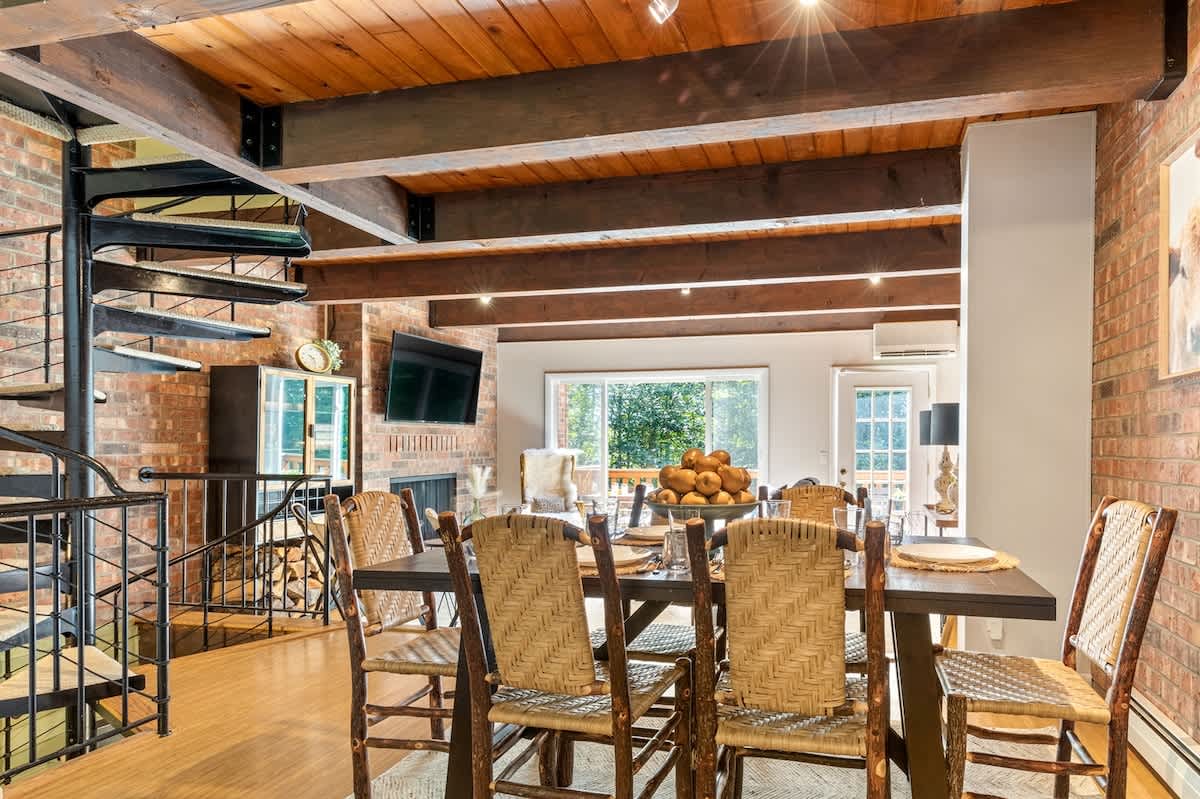 Fuldt renoveret i 22/23 en eksklusiv, moderne, bondegårdsstil 2.000 kvadratmeter åben planløsning lejlighed, med 2 store terrasser og udendørs plads, med en bålplads og nyinstalleret aircondition og privat adgang til spabad! Perfekt til underholdning og familiesammenkomster. Stuen, køkkenet og spisestuen er alle åbne med masser af siddepladser. Om sommeren og efteråret kan du åbne dørene til de store terrasser med et udendørs spisebord, sofa og hængekøje. Nyd familie-/vennetid med et bål i baghaven.