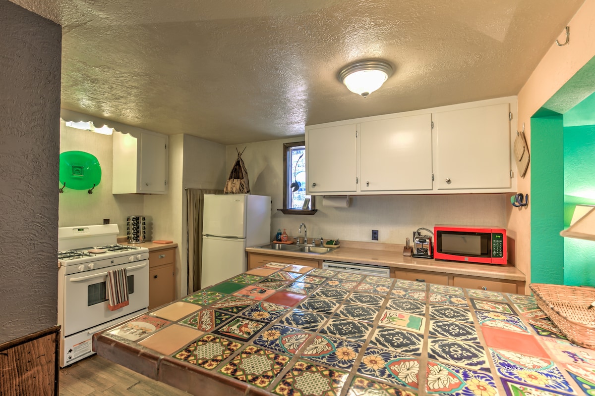 Velkommen til Shangri-La! En unik, privat og magisk ramme midt i Cloudcroft. Næsten en halv hektar indhegnet jord, hvor du kan gå en tur, nyde bålet, læse i det hyggelige separate kontor eller grille på grillen. Inden for gåafstand til Lodge og golfbane, eller landsbyens promenade til shopping. Masser af personlige detaljer! Og hvis du holder øje med feer, fugle eller andre skovvæsener, er de alle i nærheden! Kogeplade, køleskab og mikrobølgeovn medfølger.