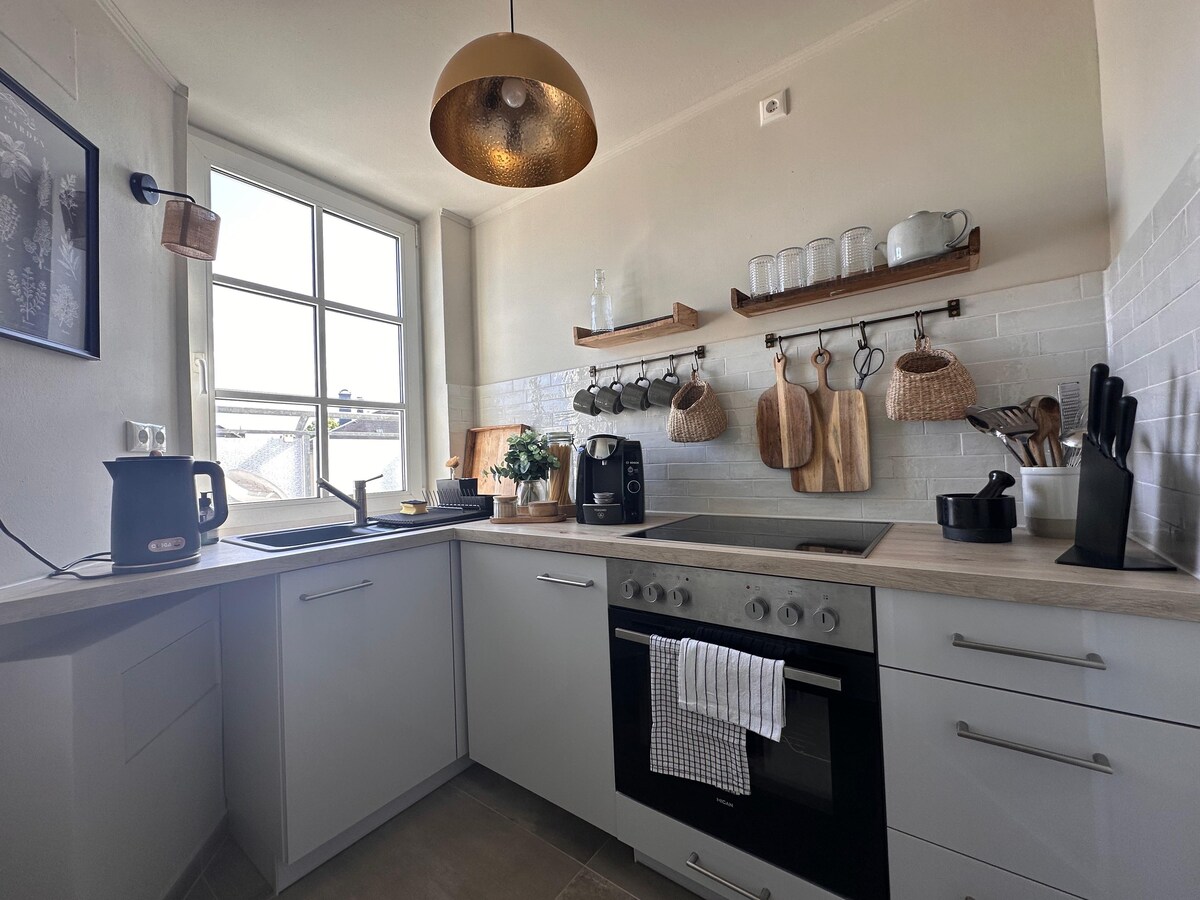 Denne særlige bolig har sin helt egen stil. Du bor på 75 kvm, i en kærligt renoveret, topmoderne lejlighed i industriel stil, med gulvvarme, fuldt udstyret køkken, balkon, hyggelige soveværelser med smart-tv og en elegant stue med spiseplads. Lejligheden ligger i Dresden-Löbtau. På få minutter kan du nå mange butikker, restauranter og offentlig transport, som bringer dig til byens centrum på 10-15 minutter.