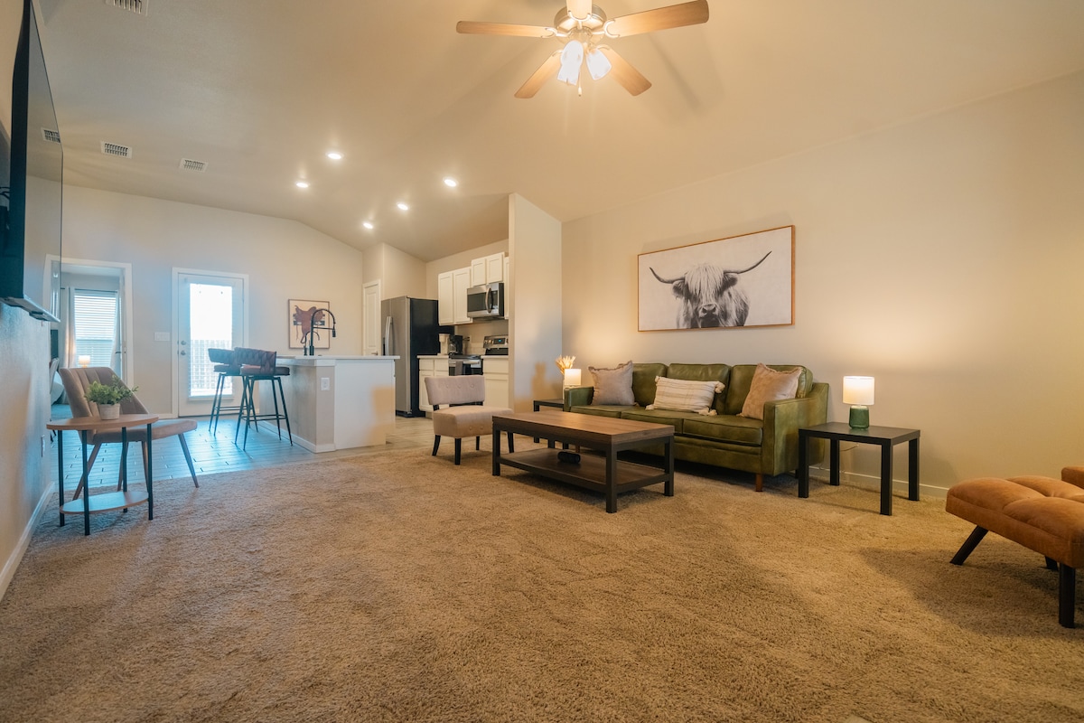 The Winsome Western is an ode to West Texas with its modern western design & has been thoughtfully curated with you in mind. Nestled in a quiet neighborhood just 15 minutes from TTU, UMC, Covenant, & central Lubbock, it’s the perfect place to unwind with family & friends. During your stay, you’re sure to enjoy all of the amazing amenities such as the fire pit, & ping pong table. Fully equipped for the ultimate experience, the Winsome Western is ready to be your home away from home!