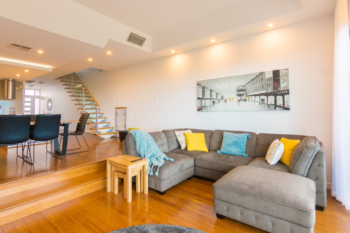 Denne afslappede perle fra 1940'erne ved stranden er kun en kort gåtur (150 m) fra Henley Square og Jetty med gode restauranter, caféer, butikker og mange is- og gelatobutikker. Inkluderer--- - uovertruffen hav- og molerudsigt – højt til loftet og smagfuldt indrettet - veludstyret køkken - udendørs lounge med udsigt over havet -bbq - Netflix -legetøj, puslespil, brætspil - nyt badeværelse - køkkenmaskine - wifi - alt sengetøj, håndklæder (også til stranden) - sikker garage - kaffemaskine og kaffe til kogeplade