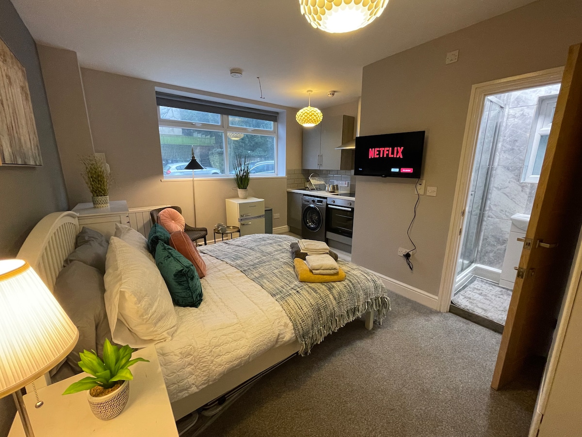 Introducing a newly renovated cosy studio flat, perfect for solo travelers or couples. It is a thoughtfully designed space that offers all the essential amenities for a comfortable and homely stay. Enjoy easy access to Birmingham City Centre and the QE hospital via excellent bus links, and explore the local shops, amenities in and surrounding Halesowen. We provide everything you need for a hassle-free visit, making it an ideal base for your travels in the heart of the Midlands.