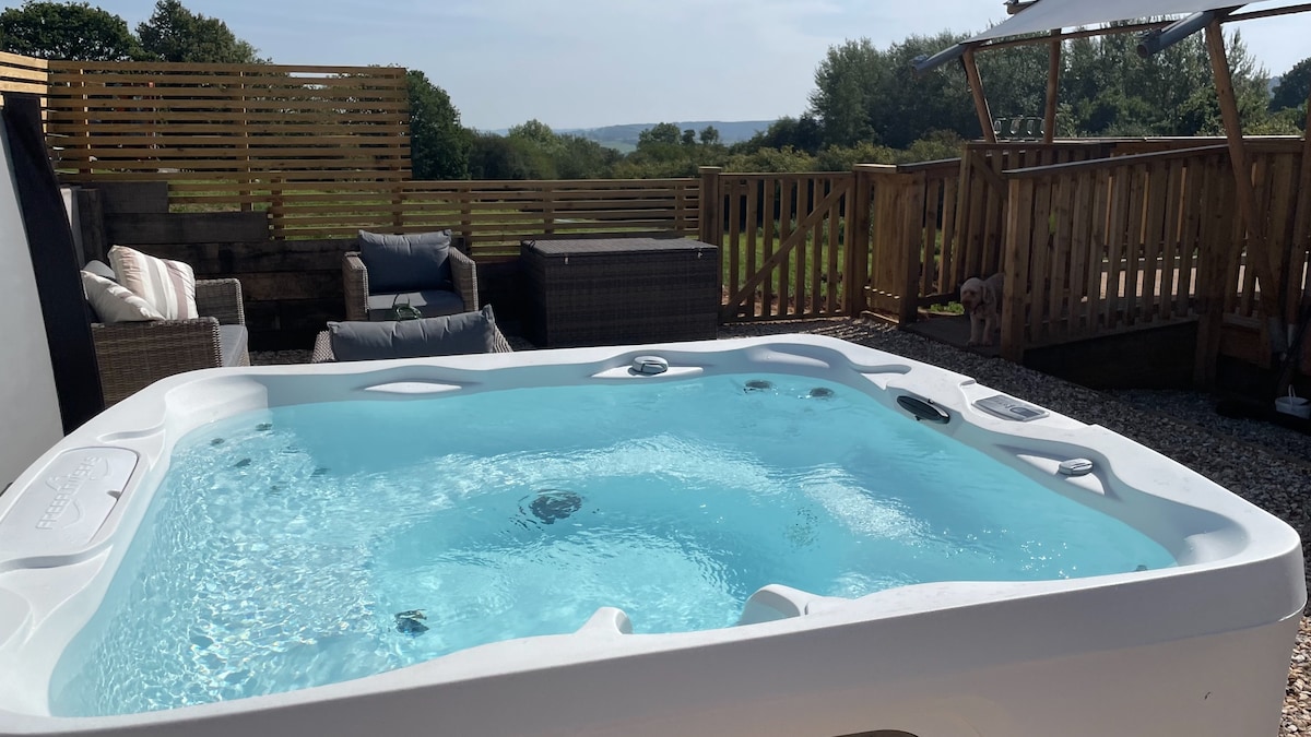 Luksuriøs safarihytte Opvarmning og en brændeovn fantastisk 6-personers spabad 6 sengepladser 1 x soveværelse med kingsize-seng 1 x soveværelse med to enkeltsenge 1 x dobbelt køjeseng 2 badeværelser hævet terrasse med fantastisk udsigt lukket område til grill og siddepladser sengetøj og håndklæder af høj kvalitet veludstyret køkken/spisestue får i den tilstødende indhegning kun 6 miles til nærmeste kyst 🐾 anmodning om hund skal foretages inden booking ekstraudstyr - leje af badekåbe fra vores vaskeri kan arrangeres efter anmodning