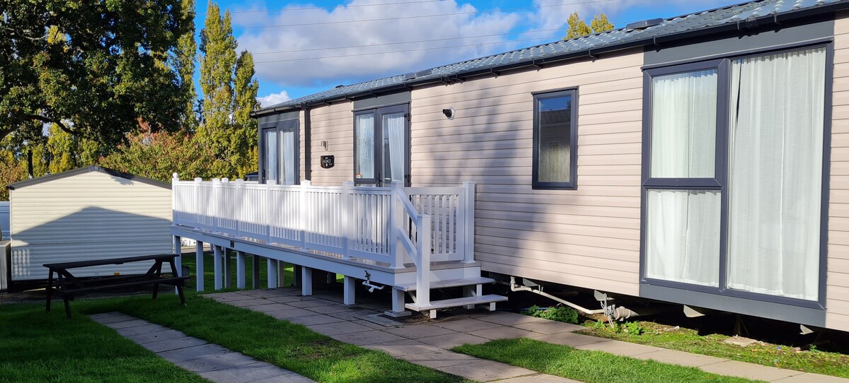 Familievenligt 2-senge feriehus (6 senge), centralvarme og dobbeltglas overalt. Beliggende i en stille cul-de-sac tæt på alle parkfaciliteter og tilstødende strand. Prisen omfatter Wi-Fi. Åbent opholdsrum med stor L-formet sofa/seng, 43" tv og fuldt udstyret integreret køkken. Familiebrusebad og et en-suite til det store soveværelse, som også har et indbygget dobbelt garderobeskab, 32" tv og kingsize-seng. Det dobbelte soveværelse har to enkeltsenge. Terrassedørene fører ud til en omgivende veranda.