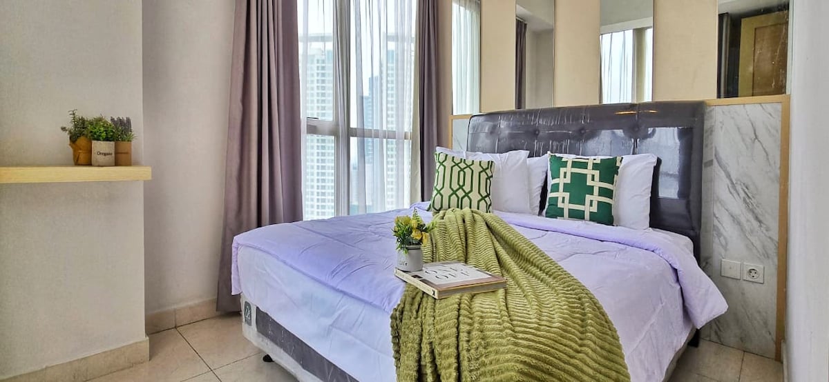 Træk dig tilbage til en rolig oase, hvor rene linjer, naturlige materialer og en harmonisk farvepalet skaber en følelse af sindsro. Denne gennemtænkte Airbnb-bolig er en oase af enkelhed og funktionalitet, der tilbyder en fredfyldt flugt fra byens travlhed. Med direkte adgang til Central Park Mall er du kun få trin fra en verden af shopping, spisning og underholdning. Uanset om du er i humør til en shoppingtur eller en tur i Jakarta Aquarium, ligger alt lige uden for døren.