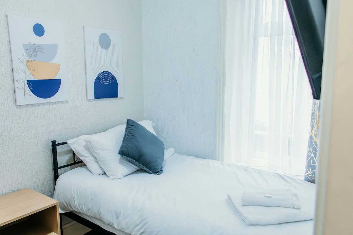 Ideel til fagfolk eller studerende. Beliggende i nærheden af offentlig transport, butikker, indkøbscenteret og Blackpool Tower. ✔ Gratis Wi-Fi ✔ Stille, venligt og sikkert miljø Kun ✔ længerevarende ophold – minimum 28 nætter Fælles spiseplads med kaffe, te, krus, køleskab og mikrobølgeovn til lette måltider. Vi er altid klar til at hjælpe dig under dit ophold. Vi værdsætter respekt, venlighed og en positiv indstilling. Enhver form for uhøflig adfærd tolereres ikke. Bemærk: Rygning er forbudt inde på hotellet.