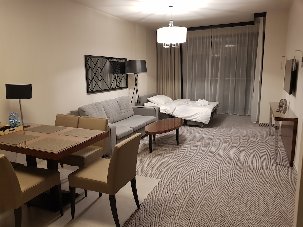 En luksuriøs, to-værelses 56-meter lejlighed med udsigt over en park og Østersøen, beliggende på 3. sal i et moderne 5* hotelkompleks, 50 m fra stranden. Det giver stilhed og fuld privatliv, er aircondition og allergivenlige. Det har et fuldt udstyret tekøkken, 2 x TV, WIFI, telefon, pengeskab, sengelinned, håndklæder, badekåber, vaskemaskine, hårtørrer og kosmetik. Betalt adgang til swimmingpool, soppebassin for børn, gradueringstårn, tør sauna system, damp sauna, aromatisk sauna, jacuzzi.