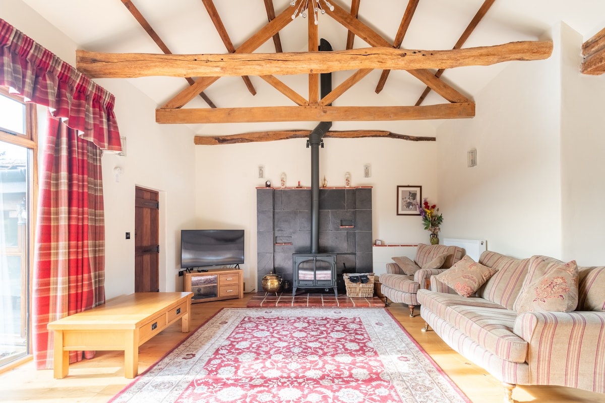 Velkomstmadspakke inkluderet. Vores maleriske lejlighed med udsigt over en moden have og en stor dam . Den er adskilt fra hovedhuset og har sin egen private have og balkon med siddepladser. Indkvarteringen omfatter 1 dobbeltværelse, badeværelse, tekøkken og opholdsområde med sovesofa (25 £ ekstra gebyr). Faciliteterne omfatter Smart TV, Wi-Fi, Bose-lydanlæg, Bluetooth-højttaler, to ringe kogeplade og ovn, mikrobølgeovn, brødrister, køleskab, strygejern og hårtørrer. Op til to kæledyr er velkomne. 15 £ per ophold