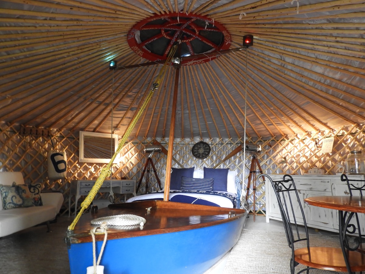 'Pearl' er en af fire luksuriøse selvforsynende jurter beliggende på en privat halvø i hjertet af Emsworth Yacht Marina. Denne jurte har en dobbeltseng indbygget i en smuk klassisk wayfarer træbåd og rummer MAKSIMALT 2 voksne og op til 3 børn med sengetøj, madlavningsfaciliteter, køleskab og fuldt udstyret med service, bestik og redskaber. En unik kystbeliggenhed i en marina af høj kvalitet. Vores jurter ligger et stenkast fra havet med et væld af aktiviteter at nyde.