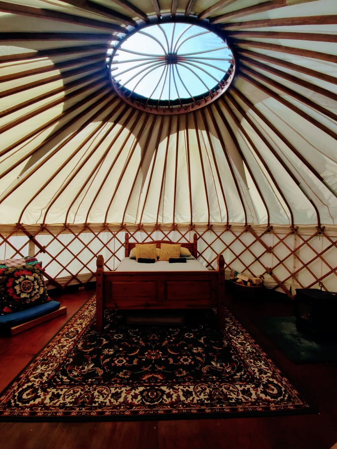 Jurten er håndbygget af mig selv og bedstemor Mongoliet og er en blanding af traditionelt mongolsk design og bohemechic. Når du træder ind i jurten, vil du straks bemærke en følelse af ro og jordforbindelse, en ideel oase fra en hektisk hverdag. Yurten er omgivet af landskab og er hjemsted for mange mongolske artefakter, som jeg har fået af bedstemor Mongoliet. Den har en kulgrill og komfur. Udenfor er der en stor spiseplads, udendørs køkken og udendørs badeværelse. Børnevenligt rum. Som set på BBC2 My Unique B&B.