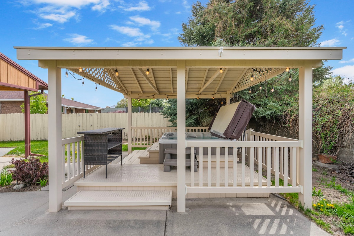 Velkommen til din perfekte ferie i Salt Lake City! Denne hyggelige bolig med 3 soveværelser, der er egnet til kæledyr, har en indhegnet gårdhave, fuldt udstyret køkken og kaffebar med friske kaffebønner. Beliggende i et roligt, sikkert område få minutter fra centrum, lufthavnen og skisportssteder. Slap af i spabadet, saml jer omkring bålpladsen, eller grill på grillen. Med hurtig wi-fi og hyggelige rum er det ideelt til familier, eventyrere eller arbejdsrejser. Det er alt, hvad du skal bruge til at slappe af, genoplade og skabe varige minder!