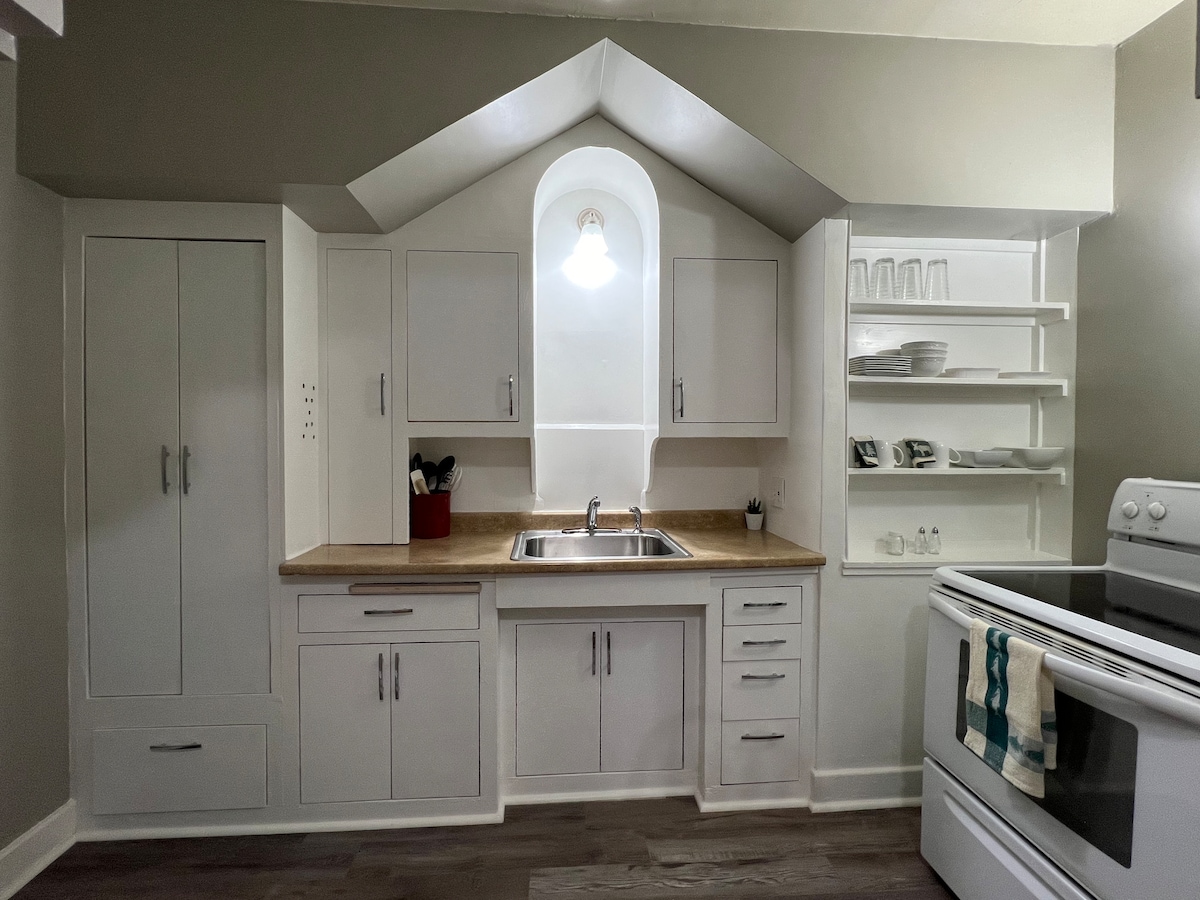 Denne historiske murstensbutik blev bygget tilbage i 1930'erne og ligger på 26th Street (tæt på den historiske 25th Street). Den har været en boutique, en isenkræmmerbutik og en elsket legetøjsbutik, men er nu blevet renoveret til en moderne, men original bolig. De oprindelige mursten og bjælker er bevaret for at bevare sin historiske charme, men den er også blevet opdateret nok til at give et moderne og hyggeligt ophold. Store, matterede vinduer giver fotostudiebelysning, hvilket giver den perfekte fotosession.