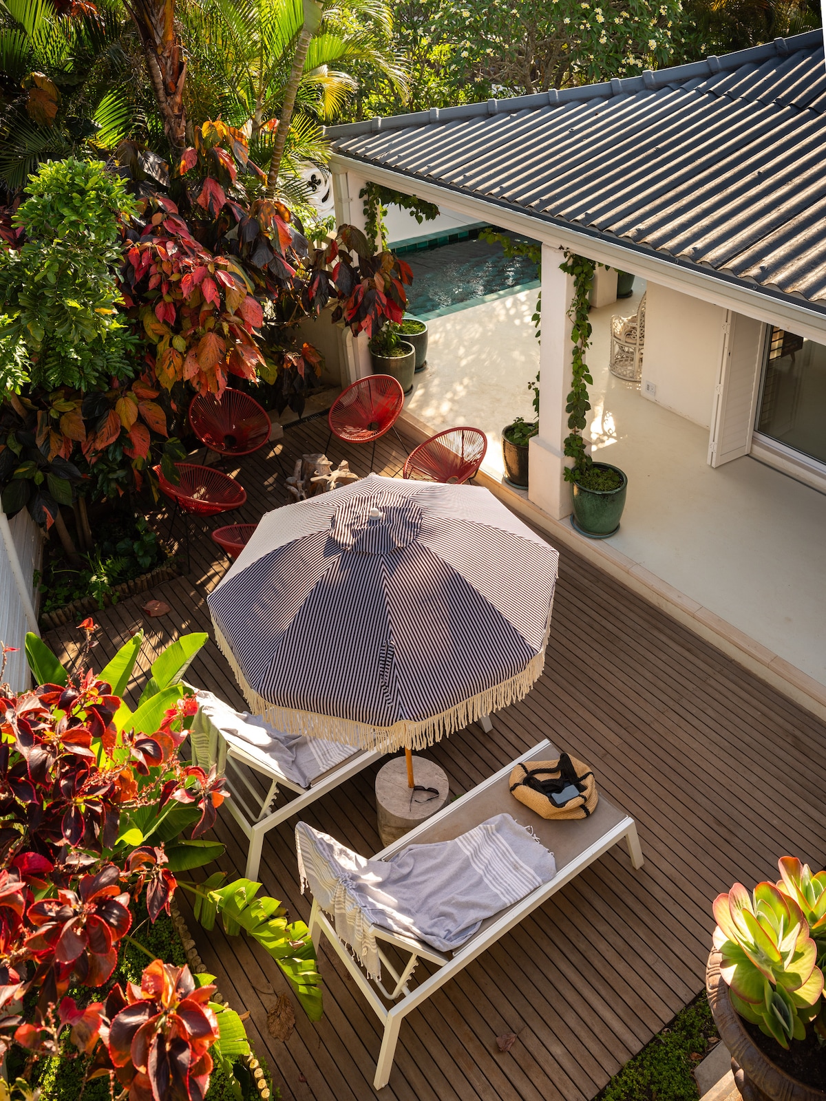 Forkæl dig selv med en balinesisk oase i Salt Rock, Ballito! Vores fredfyldte villa på 170 kvm med 1 soveværelse tilbyder en smagsprøve på paradis på Dolphin Coast i KwaZulu Natal. Beliggende kun en vej væk fra Salt Rock-stranden og i nærheden af store ejendomme som Zimbali & Santorini, vil du være omgivet af luksus. Plus, bekvemmeligheden ved at være kun 15 minutter væk fra King Shaka Lufthavn. Og du skal ikke bekymre dig om strømafbrydelser, vores sted er fuldt beskyttet.