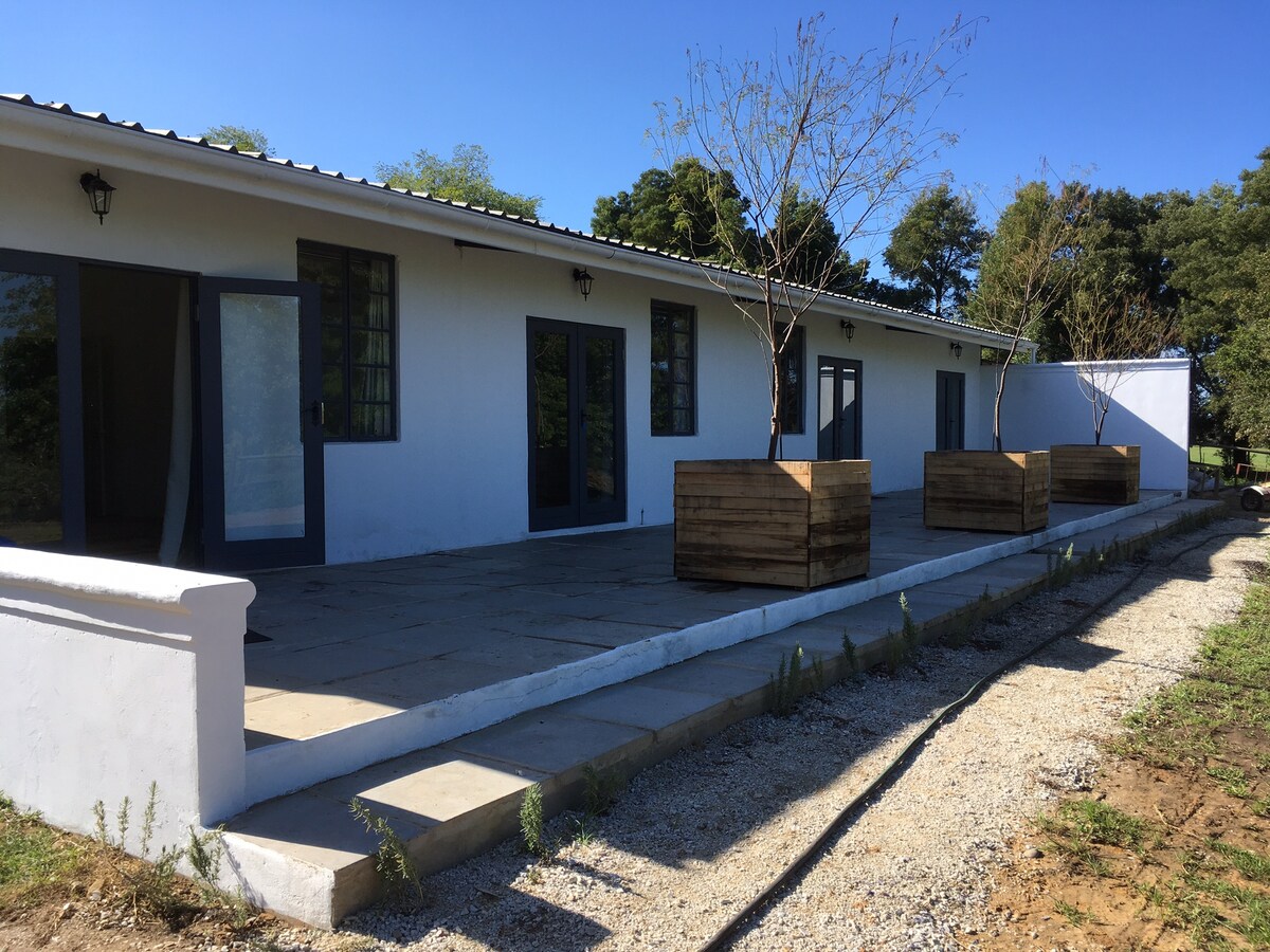 Denne smukke hytte med tre soveværelser ligger i vinmarkerne og olivenlundene i Riebeek Valley og tilbyder en intim udflugt for en familie eller nære venner - og deres pelsede ledsagere. Den gamle lade og stald på nabogården er blevet redesignet af arkitekten Bertie Schreuder. Vi har ændret formen på tingene, samtidig med at vi har hyldet deres arv. Du er nu inviteret til at nyde dette fuldt udstyrede gemmested en kort 45-minutters naturskøn køretur fra Cape Town - men en hel verden adskilt.