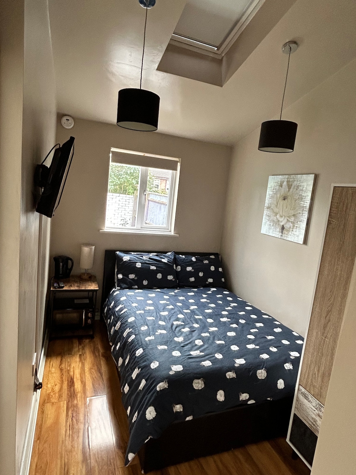 Offa Hideaway er meget komfortabel og tæt på alt, hvad Leamington har at tilbyde. Nyd overraskende fred kun 15 minutters gang fra byens centrum. Dit værelse har et ensuite, dobbeltseng med Vispring-madras, bord, tv, wi-fi, tekøkken (mikrobølgeovn, varmeplader, brødrister, kedel, slow cooker, køleskab) og opbevaring. Te, kaffe og grundlæggende morgenmad (brød, smør, syltetøj, müsli), sengetøj og håndklæder er inkluderet. Hvis du ønsker et mere komplet udvalg af morgenmadsprodukter mod et lille ekstra gebyr, så spørg.