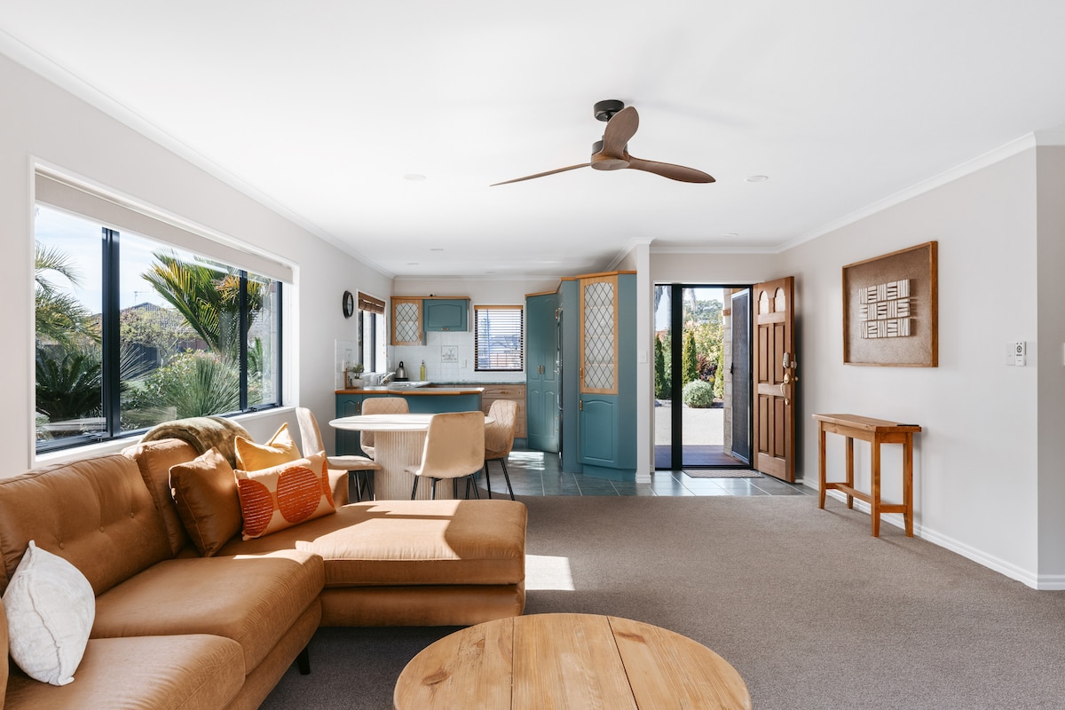 Papamoa Beach Getaway| Hyggeligt lille hjem + spa
