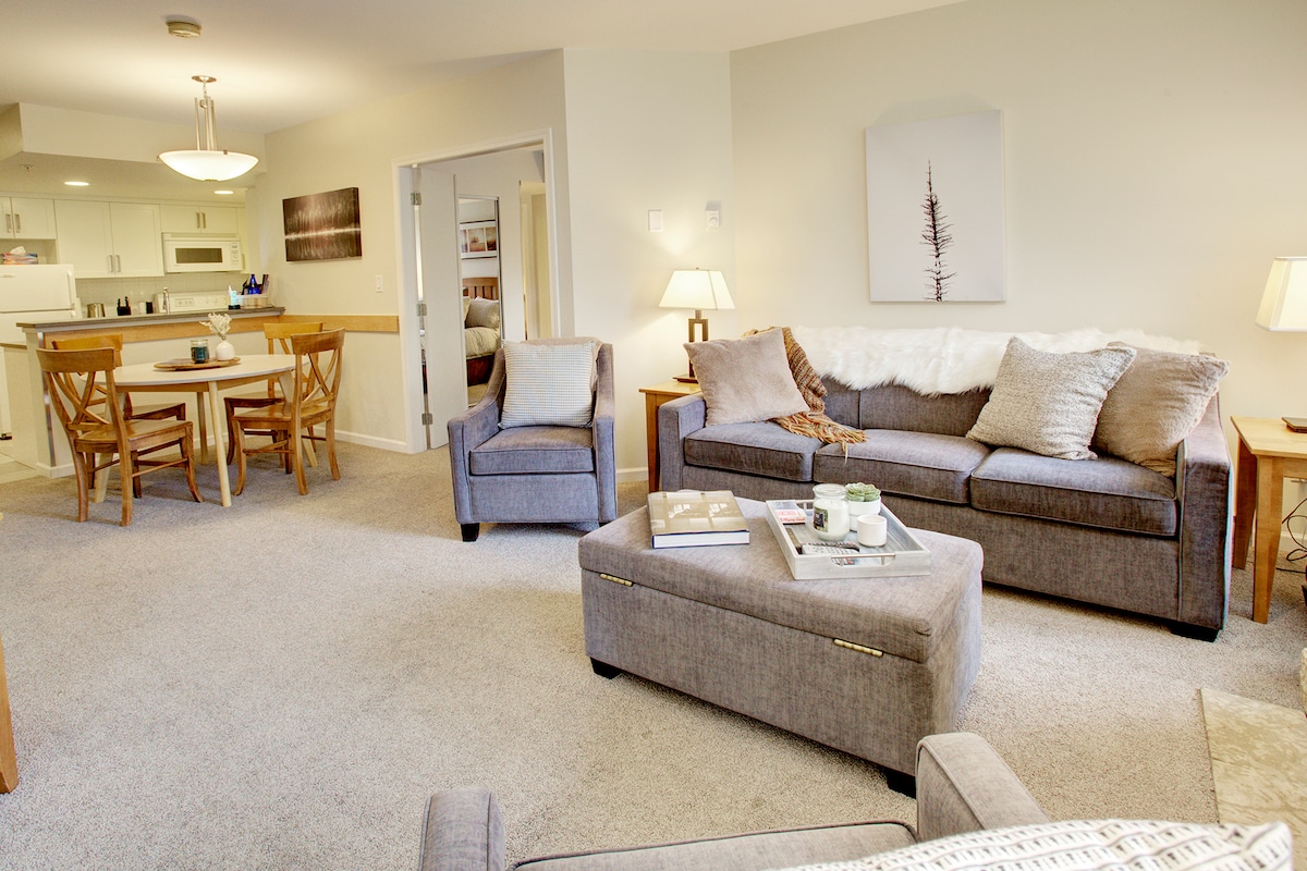 Din familie vil være tæt på alt, når I bor i denne centralt beliggende bolig. Trin fra landsbyen og alt, hvad den kan tilbyde, og 10 minutters gang til bunden af bjerget. Består af 2 soveværelser, 1 queen og 1 king, der kan opdeles i 2 enkeltsenge for at rumme familier. Den anden seng er en udtrækkelig queensize sofa. Enheden omfatter også en sikret parkeringsplads tæt på indgangen for nem adgang. Vi glæder os til at være vært for din bjergferie! Bemærk, at der ikke er aircondition.