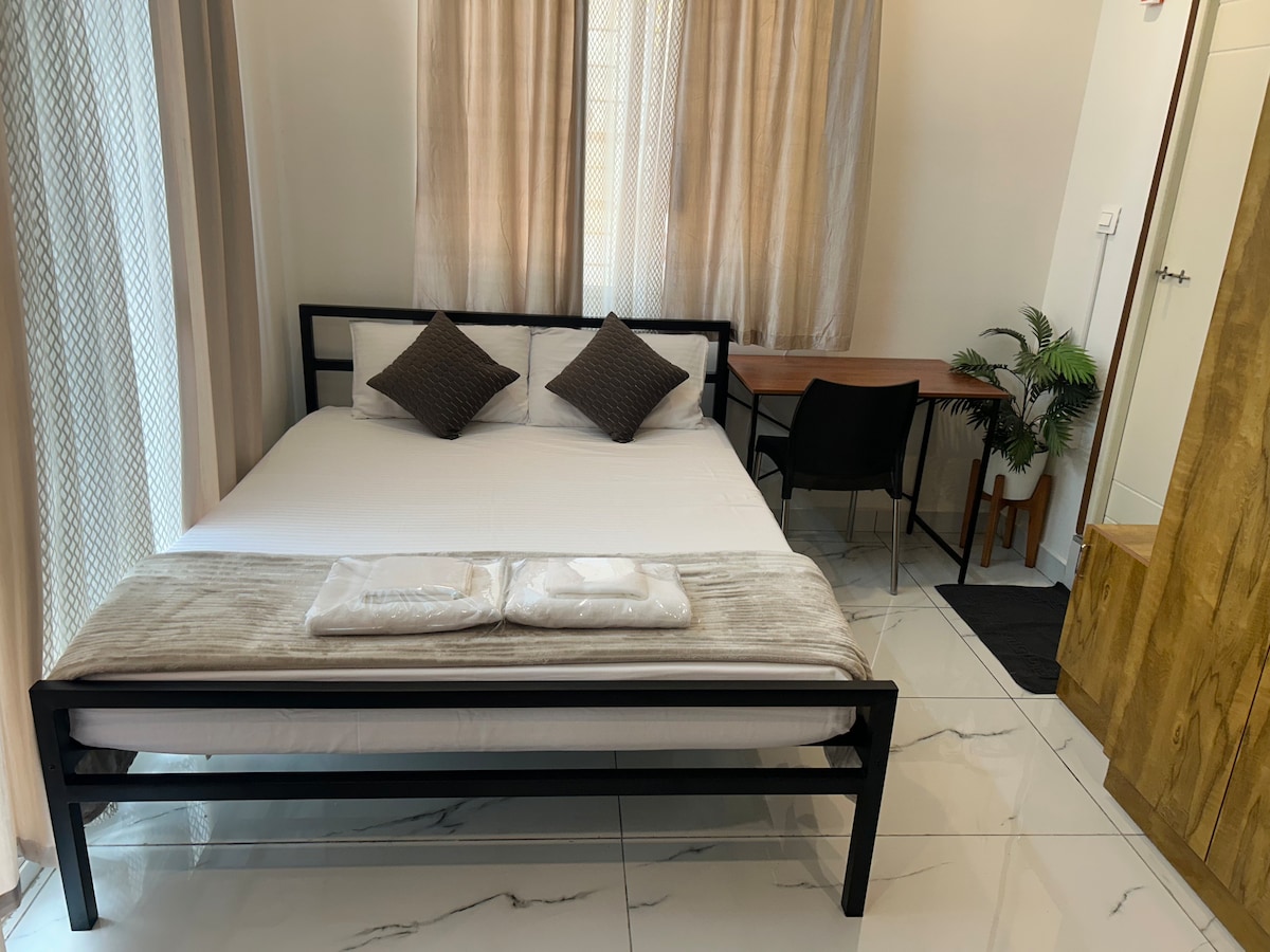 Nestled in the heart of Whitefield, surrounded by lush greenery, our premium 1 BHK apartments are meticulously designed to offer high-quality stay experience and extreme comfort. We have used wakefit 10" memory foam mattresses in bed room and amoeba sofa cum bed in the hall, to offer ultimate sleep quality and back support. We designed our kitchen spaces with modern kitchen utensils - including mini bar set. Other amenities include 100 Mbps WIFI, proximity to the Metro station, and IT hubs.