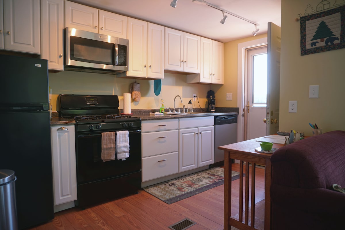 Denne rustikke hytte på den nordlige del af landet har to soveværelser og et bad til op til fire gæster. Det er blevet renoveret med komfortable senge og puder, nye apparater, en toastet pillefyr, et smukt 75" tv med lydbar og subwoofer til filmaftener, masser af parkering. Den ligger 9 minutter syd for downtown Littleton og 11 minutter nord for Cannon Mountain. Uanset om du er på besøg for vintersport, bladkigning, bjergbestigning eller Polly's Pancakes, er vi tæt på, hvad der sker.
