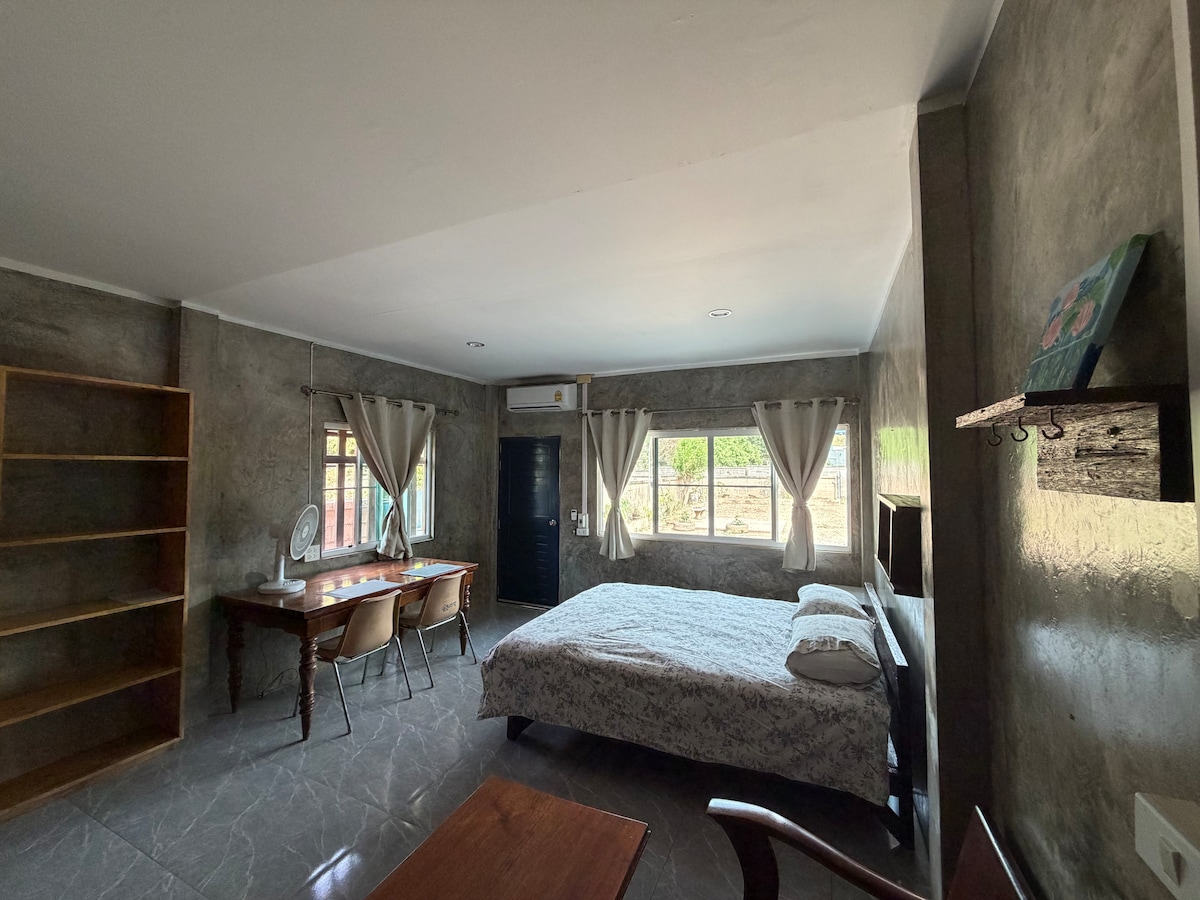 "Kham Pui House" Dette hus er varmt. Tanken er at få dette hus til at føles som et hjem for alle, når de kommer på besøg. 🏡 Huset er opdelt i 3 soveværelser, 2 badeværelser, 1 stue og 1 køkken, der kan bruges til madlavning og en terrasse med en lille have bag huset. Der er plads til at parkere 2 biler. Perfekt til grupper af venner, familier eller små organisationer med ca. 6-9 medlemmer. 🚶 Det er behageligt at gå rundt i byen. Inden for 300 meter finder du mange vigtige steder i nærheden af Huay Kaempui, herunder et frisk marked 5 minutter væk. "Huan Kham Pui" byder dig varmt velkommen.