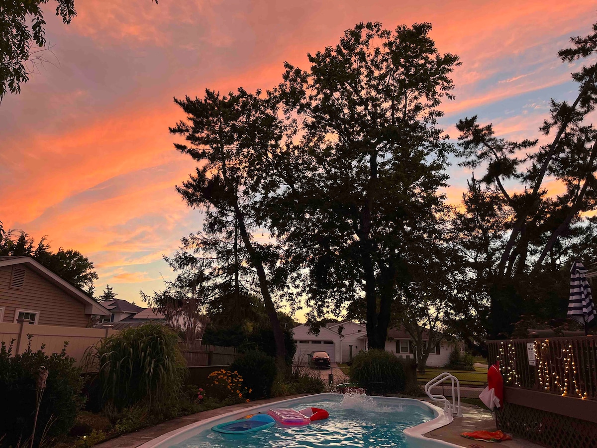Lige blevet renoveret! Sengetøj og håndklæder INKLUDERET! Perfekt til to familier. Et soveværelse med kingsize- og queensize-seng, og det tredje soveværelse har en køjeseng med en udtræksseng samt en enkeltseng. (Plads til otte personer i alt) Saltvandspool i jorden, der er perfekt til afslapning hele dagen med dine børn, hvis stranden er for meget af en opgave eller at spise middag udenfor. Vores gård er indhegnet og perfekt til din pelsede ven. Åben stue, spisestue og køkken. God til at mødes og socialisere