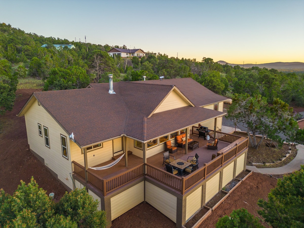 Kalder alle fredssøgende! Vores afsondrede hytte tilbyder gæster et hyggeligt åbent hjem med betagende bjergudsigt, rummelige værelser, utrolig stjernekiggeri og en nem køretur til Grand Canyon! Vi er: • 30 minutter til indgangen til Grand Canyon. • 40 minutter til downtown Williams. • 50 minutter til Flagstaff. • 3 soveværelser, 2 badeværelser, 6 senge i alt, 8 sengepladser. • Fredfyldt beliggenhed med fantastisk udsigt over San Francisco Peak-bjergene. • WiFi. • Ekstremt komfortabelt sengetøj. • Pejs.