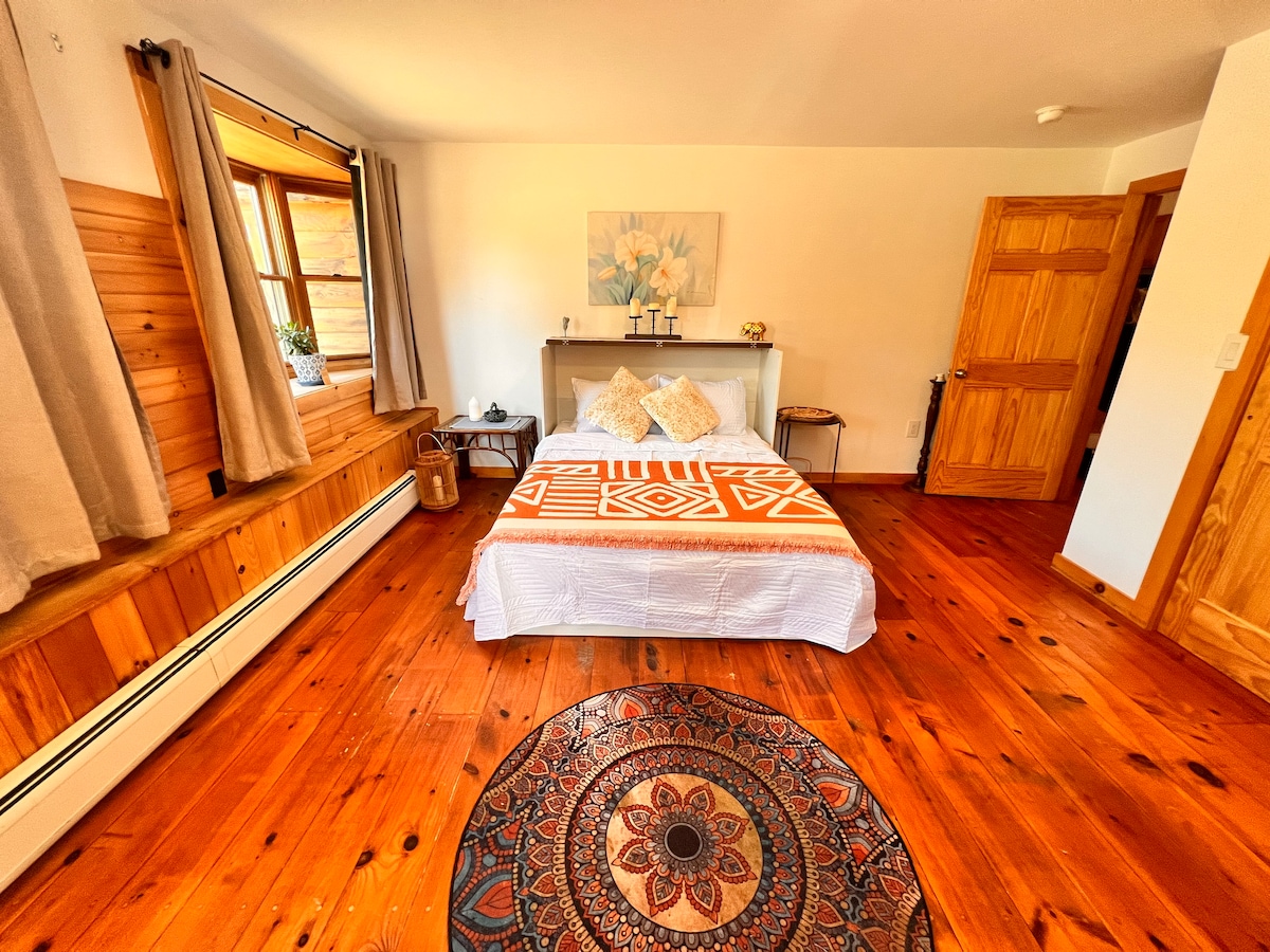 Komfortabel lejlighed i sin egen bygning på 50+ skovklædte hektar i nærheden af Saranac Lake, Lake Placid og Whiteface Mtn. Kilometervis af vandrestier. Fantastisk til cykling. Stor, privat afskærmet veranda; Tempurpedic queen-size seng; fuldt køkken, stor LR og hyggelige lænestole. Vi har nu overdækket parkering til én bil! Vi er kun 20 minutter fra Whiteface skiområde og nærliggende vandrestier og mountainbike-stier samt søer og floder til svømning og padling. Der er stier på ejendommen til vandreture og snesko.