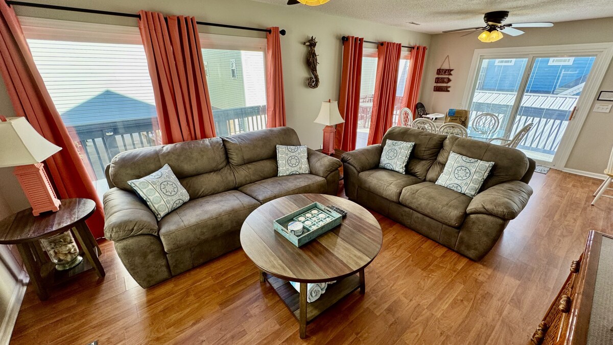 🚗 Golfvogn er kun gratis i vintermånederne og tilgængelig som en valgfri leje uden for vinteren Kæledyrsvenlig bolig ved vandet med 4 soveværelser og 3 badeværelser i Cherry Grove, kun 5-6 minutters gang til stranden. Slap af på kanalen med din private kajplads, tænd i grillen, og nyd smart-tv, cykler, strandlegetøj og masser af udendørs siddepladser. Boligen er rummelig, komfortabel og ideel til familier eller grupper.