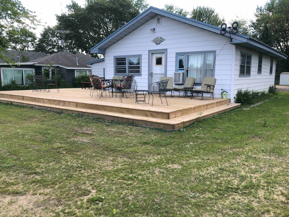 Nyd afslappede dage og rolige nætter i denne unikke og rolige bolig. Oplev naturen lige fra terrassen på denne hyggelige træhytte bygget af hele cedertræstammer. Lyt til Chippewa-flodens flydende vand kun 100 fod fra dækket, og hør fuglesangene fra en række forskellige arter, mens du nyder din morgenkaffe eller eftermiddagsdrikke. Hvis du er heldig, kan du få et glimt af et vilde dyr, der lever langs denne flodstrækning.