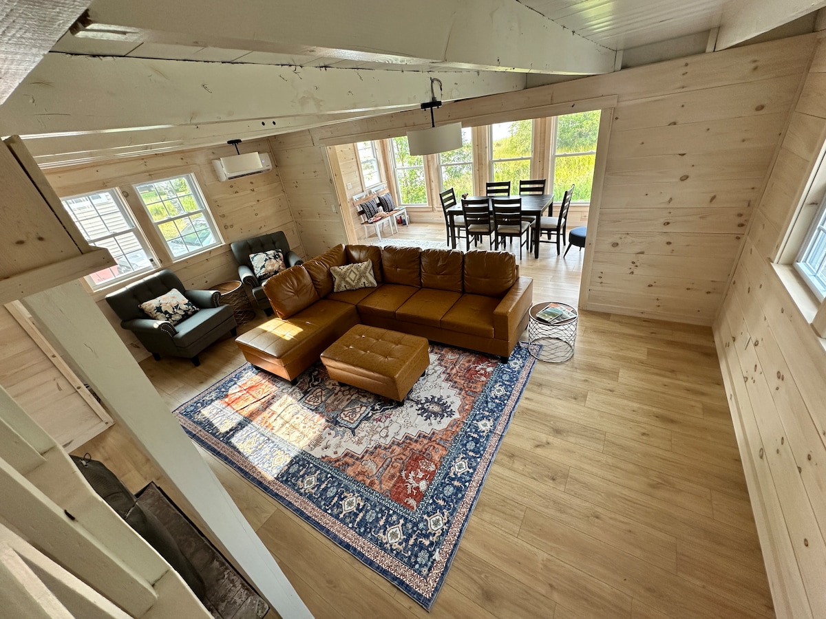 Muk-Bog Lodge ligger på 30 hektar Maine-skov og er omgivet af mere end 100 hektar bevarede Maine-skovområder. Beliggende på en privat indkørsel flere hundrede meter fra hovedvejen, tilbyder denne hytte dig privatliv, mens du stadig er inden for 10 minutter fra downtown Milo. Hytten tilbyder også en 30x40 garage til opbevaring eller parkering under leje. Der er også et 12x14 mudroom ved indgangen for mere opbevaring og et åbent 12x12 bagdæk med udsigt over ildstedet og bageste græsplæneområde.