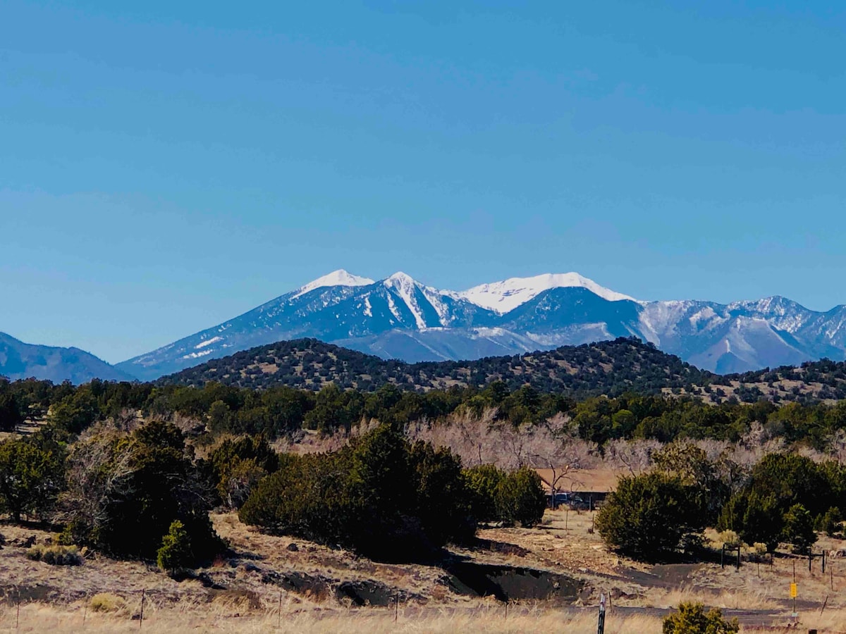 Kick back, relax and escape the heat in this modern Casita with breathtaking mountain views on a 2.5 acre fully fenced ranch. Enjoy easy access to this peaceful property centrally located to all Northern Arizona has to offer including Arizona Snowbowl, Downtown Flagstaff, NAU, Bearizona, The North Pole Experience, Grand Canyon, Sedona, National Monuments, hunting, hiking, off-roading and much more! Need more space? Book together with the Lovett Lodge and have the entire property to yourself!