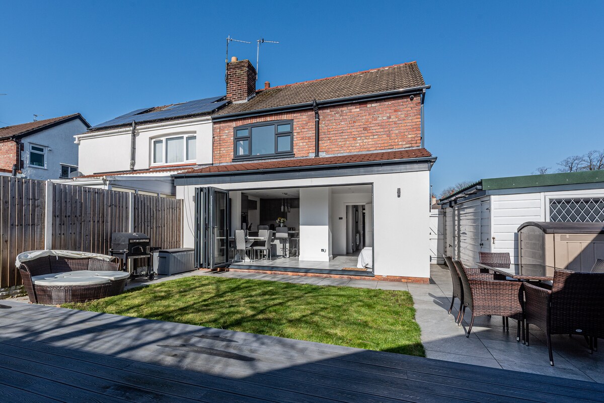 Roligt forstadsparadis med Wales som baghave og Liverpool og Chester en kort togtur væk. Hus med tre soveværelser, en åben spisestue og et køkken med en dobbeltfoldet dør, der kan åbnes, så du kan udvide det indendørsområde til det udendørsområde på en varm dag, og en behagelig stue. Garage ombygget til biografrum 🎥 Gratis parkering og ligger tæt på transport til byer som Liverpool og Chester. Gå til Port Sunlight - 7 minutter Tog til Liverpool - 15 minutter Tog til Chester - 26 minutter Der er masser af lokale pubber og restauranter inden for gåafstand.