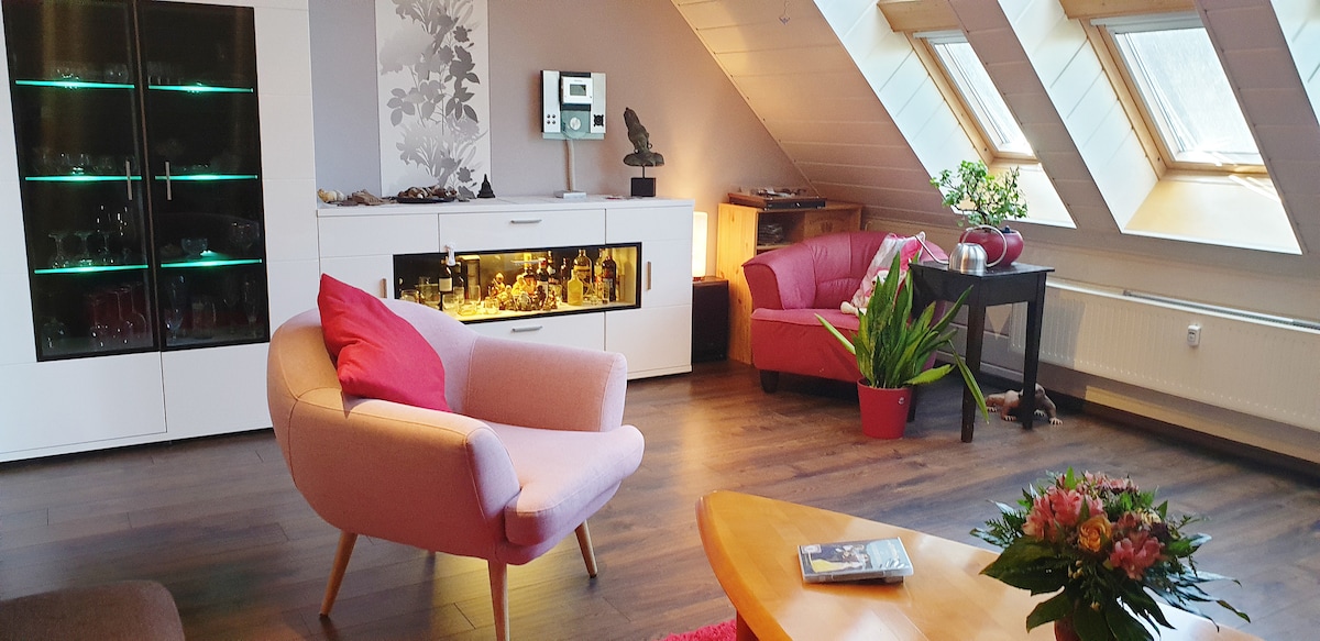 Den lysgennemstrømmede lejlighed med en ekstraordinær indretning giver mulighed for et hyggeligt ophold i nærheden af Neubrandenburgs centrum og 20 minutters gang fra den smukke Tollensesee. Lejligheden er nyrenoveret, har 1 enkeltværelse samt en sovehems med dobbeltseng, et fuldt udstyret køkken med opvaskemaskine, badeværelse med badekar og tørretumbler, tv og Wi-Fi. Lejligheden ligger på 2. sal i et 6-familiehus og kan nås via trappen i gangen.