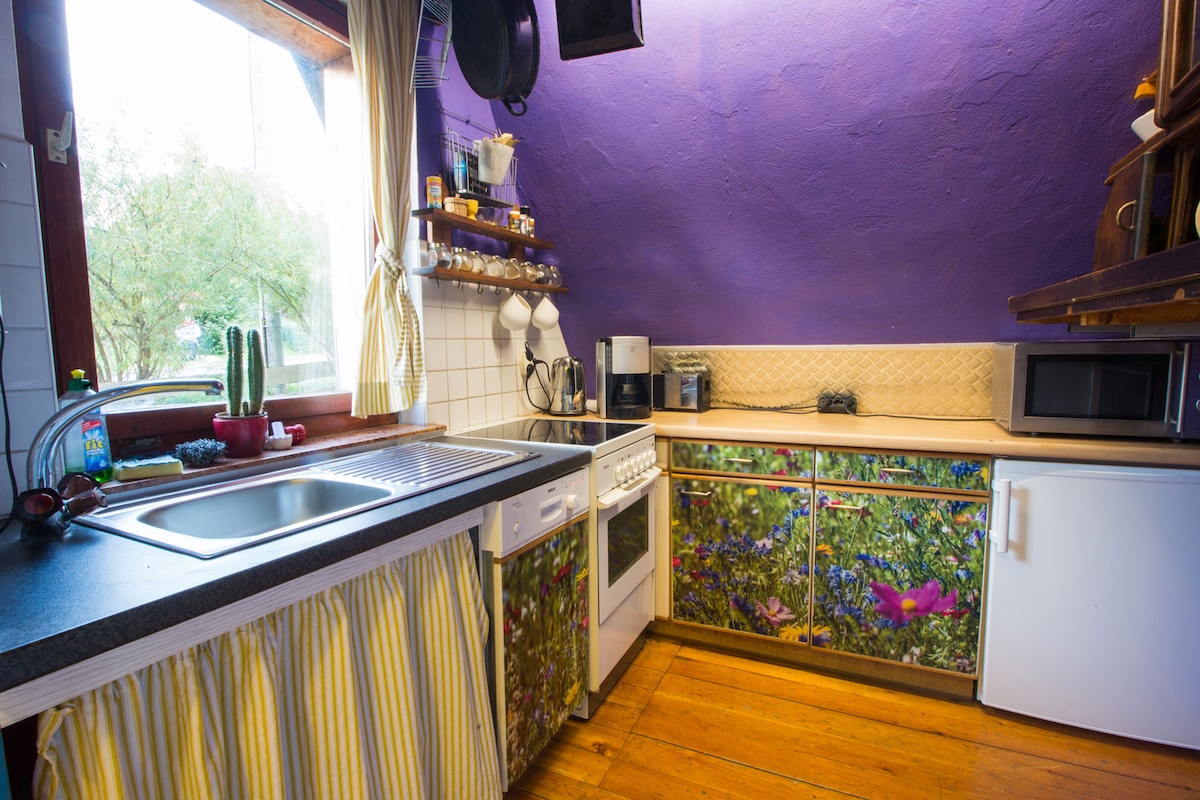 Læn dig tilbage, og slap af i denne rolige, stilfulde bolig. Vores lejlighed er udstyret med alle nødvendige faciliteter, herunder et fuldt udstyret køkken samt badeværelse med regnbruser. Nyd naturen i vores smukke Ore Mountains, mens du går og cykler. Du kan kigge i vores bøger eller slappe af i vores smukke have med et glas vin eller en kop kaffe. Besøg vores bjergbyer, og fordyb dig i vores Erzgebirge-traditioner.
