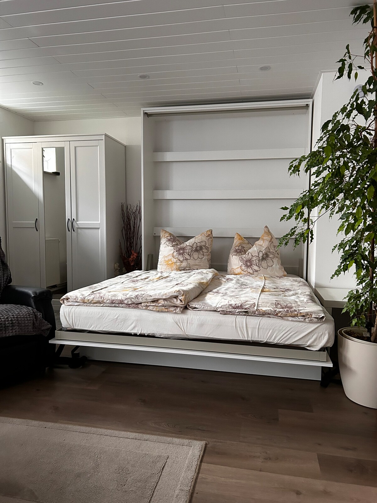 Den lyse 1-værelses lejlighed ligger på 2. sal i en centralt beliggende villa. Der er gratis parkering på de rummelige lokaler. Kaffemaskinen er en TASSIMO Pad-maskine. Komfur: 2-blus Vaskemaskine og tørretumbler kan bruges gratis på anmodning. Togstation, universitet og centrum ligger i et par minutters gang derfra. Der er indkøbsfaciliteter i umiddelbar nærhed.