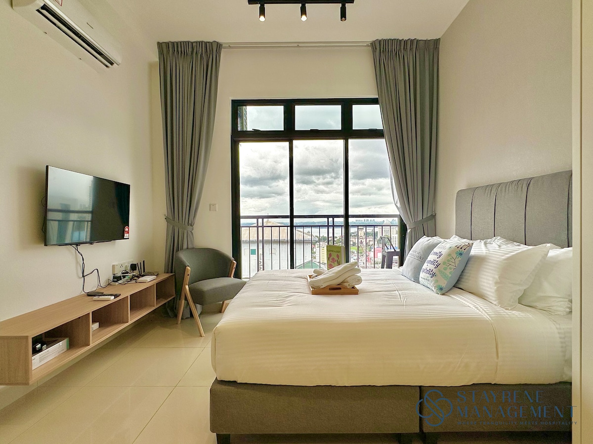 Luksus resort-stil studiosuite med privat balkon, hvor du kan nyde den 180 graders betagende havudsigt og havbrise!🌊 Strategisk beliggenhed med det berømte R&F Mall lige ved siden af lejligheden! Koreansk, kinesisk mad, café og weekendmarked inden for gåafstand! 🎮Smart-tv og arkadespil, som du kan spille og nyde tiden her! -1 minutters gang fra R&F Mall -5 minutters gang fra JB CIQ - 3 minutters kørsel til JB Culture Street & Bazaar Karat Night Market - 5 minutter til Danga Bay
