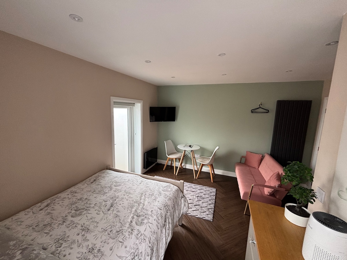 5 ud af 5 i gennemsnitlig bedømmelse, 49 omtalerselvstændig studio anneks med parkering