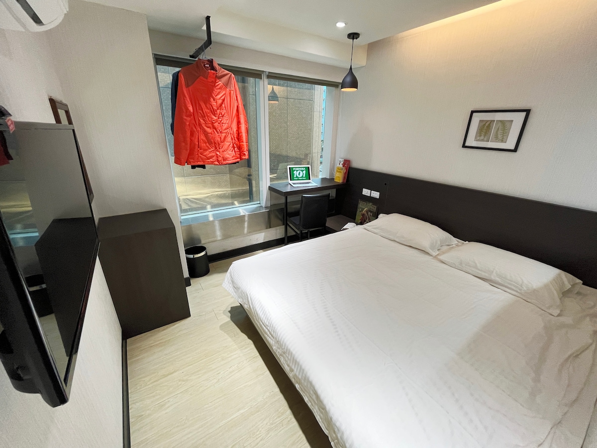 Nem ● transport: 3 minutter til lufthavnens MRT Y17 udgang (Taipei Station) og 5 minutter til MRT Beimen Station. ● Livsfunktioner: Der er mange shoppingdistrikter i nærheden, restauranter, drikkevarebutikker, supermarkeder osv. Taipei Station shoppingdistrikt, 3 minutters gang til Huayin Street shoppingdistrikt, 10 minutter til Ningxia Night Market. Ting, du skal overveje, før du reserverer ● Overnatning er eksklusive morgenmad! Der er mange forskellige muligheder for morgenmad omkring boligen, så du kan opleve den lokale taiwanske morgenmadskultur. Der er ingen parkeringspladser i● denne bygning! Hvis du har brug for parkering, kan du gå til den underjordiske parkeringsplads på Taiyuan Road (forbundet med Y17-udgangen). Parkeringsgebyret er angivet på stedet. ● Ind- og udtjekningstider Indtjekningstid: 15:00-23:00 Bemærk! (Der er ingen reception efter 23:00, og der tilbydes ikke selvbetjening check-in) Check ud: Før 12:00 ● Antal personer Dette værelse kan maksimalt rumme 2 voksne, og der tilbydes ikke ekstra senge. Hvis der er mere end 2 personer, opkræves et rengøringsgebyr på 800/person. [Grundlæggende værelsesinformation] ● Hoveddøren er en induktiv kortlås, og værelsesdøren er en traditionel lås ● Værelset har vinduer ● Areal: ca. 13 kvadratmeter ● Seng: En stor Queen Size (152 cm x 188 cm) ● Separat badeværelse, adskilt fra våd og tør 40 tommer● smart-tv [Værelsesudstyr] ● Aésop shower gel, shampoo, balsam ● Dyson hårtørrer ● Store håndklæder, små håndklæder, badehætter ● Tepose, 3-i-1 kaffe