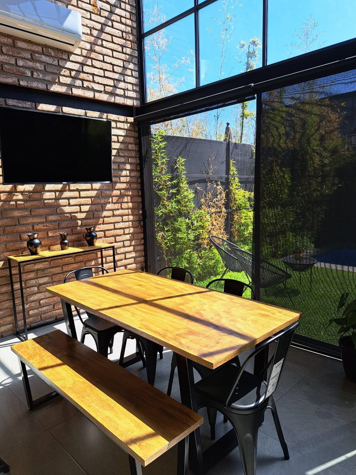 Disfruta de increíbles días en familia en casa tipo loft industrial amueblado, dentro de fraccionamiento ubicada en Xochitepec, Morelos. Cuenta con: • 2 recamaras, cada una con cama matrimonial, además una de las habitaciones cuenta con sofá cama • Sala-comedor, televisión • Cocina equipada con lo necesario • Jardín con asador • Alberca privada • Mosquiteros, ventiladores de techo y aire acondicionado • Estacionamiento • Vigilancia las 24 hrs • Internet La zona es tranquila, de fácil acceso