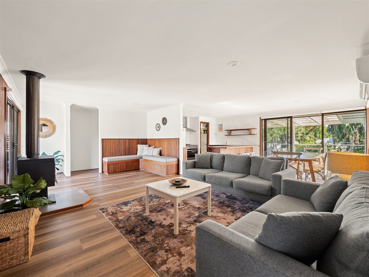 Denne stilfulde etplansbolig ligger lige over for Geographe Bays forstrand og en kort gåtur fra Dunsboroughs bymidte. Den er perfekt til familier, der søger en strandferie. Med 4 soveværelser, 2 badeværelser og aircondition med kanaler tilbyder den komfort året rundt. Slap af i det åbne opholdsområde, lad børnene nyde aktivitetsrummet, eller slap af i den lukkede have med udendørs spisning. Ubegrænset wi-fi sikrer, at hele familien bliver underholdt.