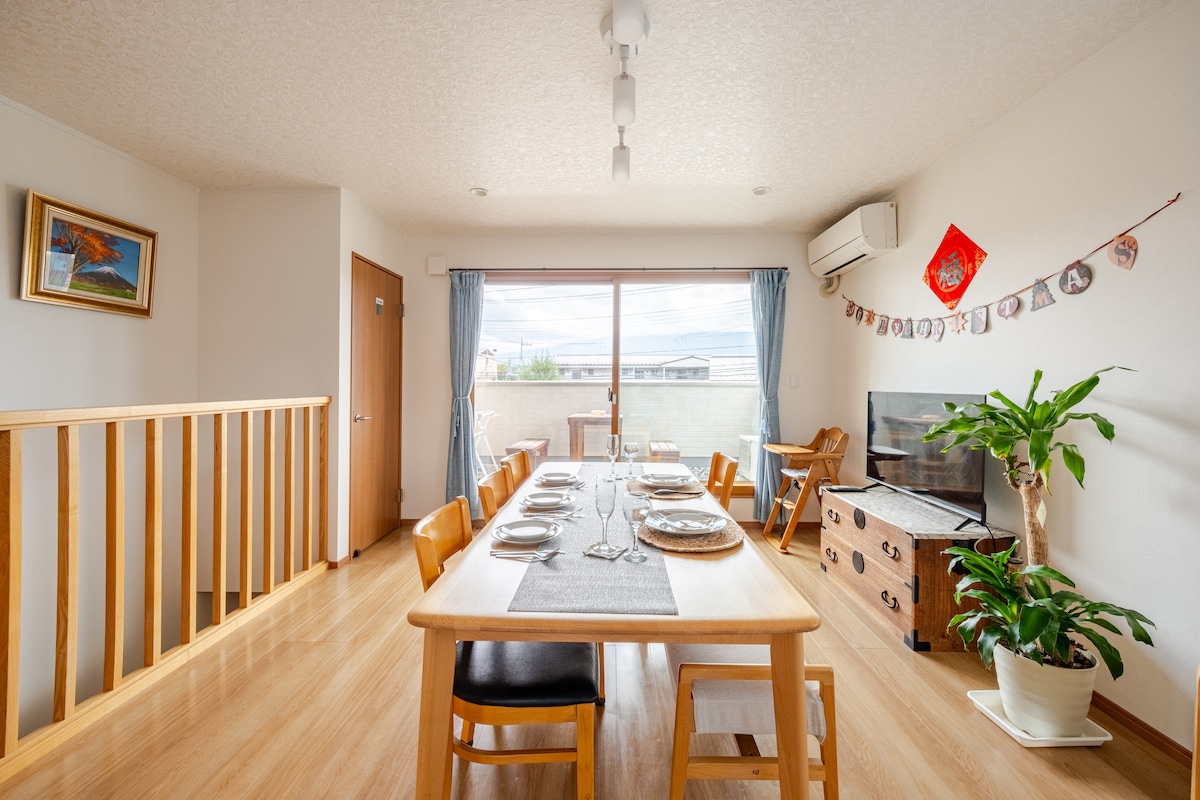 Mesterværk af japansk arkitekt "Houei villaer hus" ~ Luksus leje villa afsluttet i juli 2021 i kontordistriktet i Lake Kawaguchi med høj bekvemmelighed Byggeri af større hovedentreprenører, komfortable omgivelser og urokkelig ro i sindet for beboerne Første sal er udstyret med moderne værelser i vestlig stil og traditionelle værelser i japansk stil, og når du går op ad trappen, er der en rummelig stue med udsigt over det hellige og majestætiske Mt. Fuji.Det tager naturligt lys ind, og du kan også se skønheden i Mt. Fuji fra den lyse veranda og badeværelse på den lyse veranda og badeværelse.Derudover er der to badeværelser og toiletter, hver med to badeværelser og toiletter, så du kan mærke følelsen af luksus, når venner kommer.Køkkenredskaber, tallerkener, apparater, alle udstyret, vi tilbyder komfort over huset. Ejeren bor ca. 300 meter fra bygningen, og afbrydelsen af huset kan håndteres med det samme. 1. Panoramaudsigt over Fuji 2, 2 badeværelser, stort badeværelse kan se Mt. Fuji.2 toiletter med vinduer.5 soveværelser med aircondition, køkken og stor stue.Især egnet til store regimenter. 3. Kawaguchiko Commercial Center, ca. 100 meter rundt, indkøbscenter, supermarked, døgnåben nærbutik, makeupbutik, mange restauranter, praktisk nok. Omkring bygningen: Lake Kawaguchiko og kun 100 m med største indkøbscenter. . Praktisk transport, 12 minutters gang fra Kawaguchiko Station
