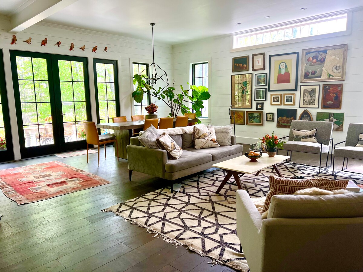 Tag på udflugt til en drømmehytte med træramme i Maines skove. Høje bjælker, strålende opvarmede gulve, en kingsize-højseng og et knitrende bål venter. Drik kaffe på et af de to dæk, vandr på Bradbury Mountain (3 minutter væk), shop i Freeport (10 minutter væk), eller spis i Portland (20 minutter væk) – og vend derefter tilbage til dit hyggelige gemmested under stjernerne. Fuldt udstyret køkken, hvælvet loft, strålende varme i gulvet, privat indkørsel, bålplads og fredfyldt skovudsigt gør det til det perfekte fristed året rundt.