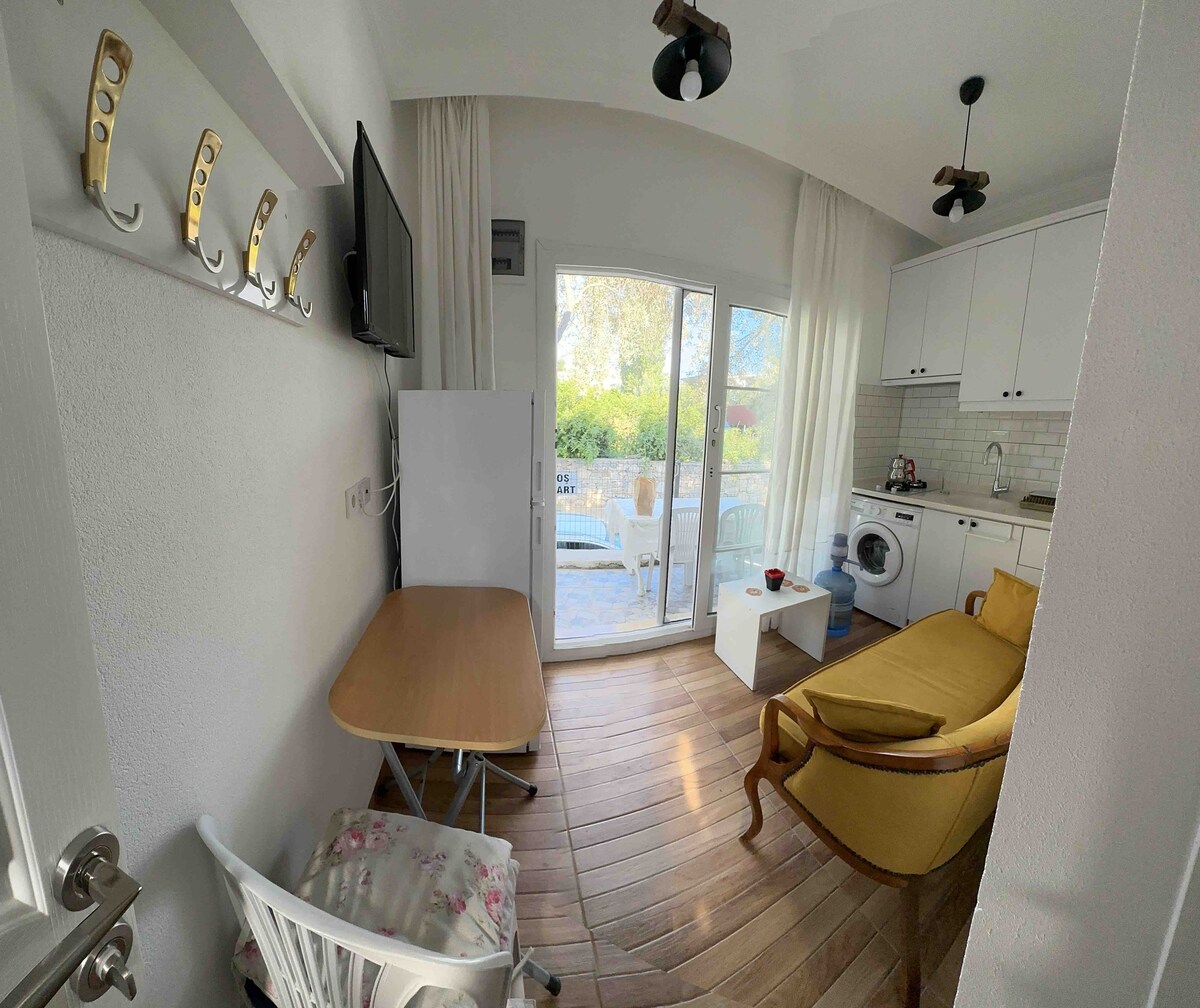 Vores lejlighed er centralt beliggende på en stille, traditionel Bodrum-gade. Så du kan udforske alle Bodrums skønheder til fods. Komfortabel og velegnet til at bo året rundt. Tæt på havet, shopping og underholdningssteder, busterminal, historiske steder (5 minutter til overalt) med et udstyret køkken og privat balkon.